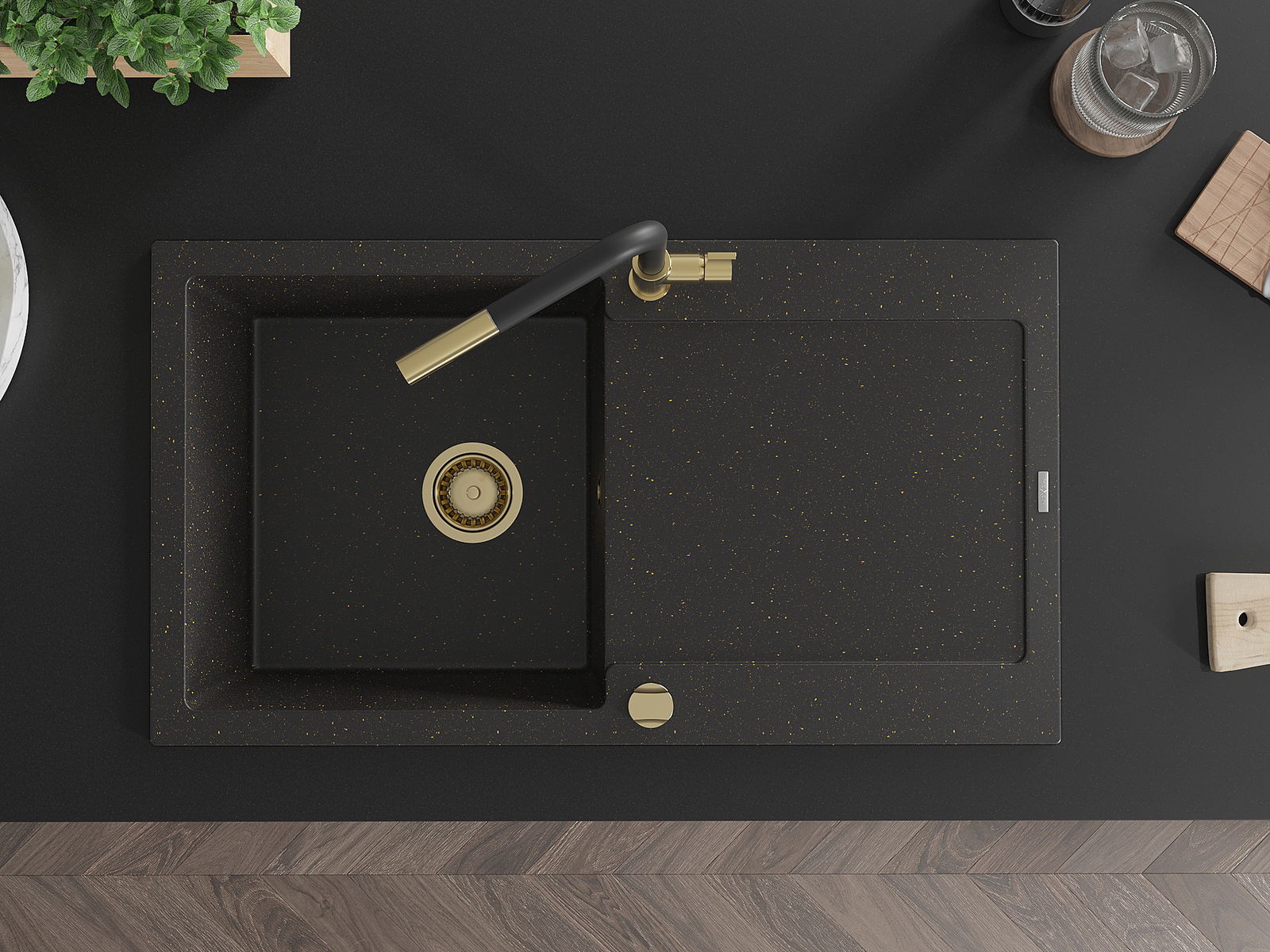 The sink is made of high quality granite. It is an elegant and, above all, practical complement to every kitchen, regardless of its style. High quality and granite durability ensure many years of use.