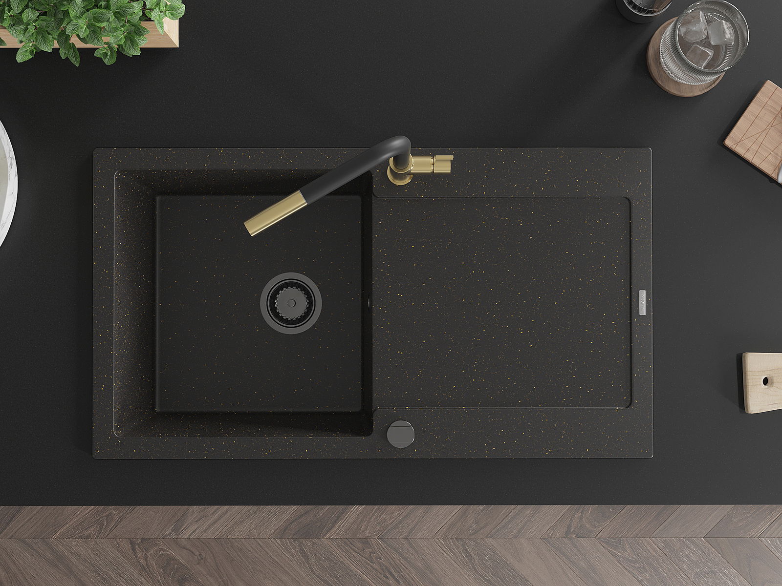 The sink is made of high quality granite. It is an elegant and, above all, practical complement to every kitchen, regardless of its style. High quality and granite durability ensure many years of use.