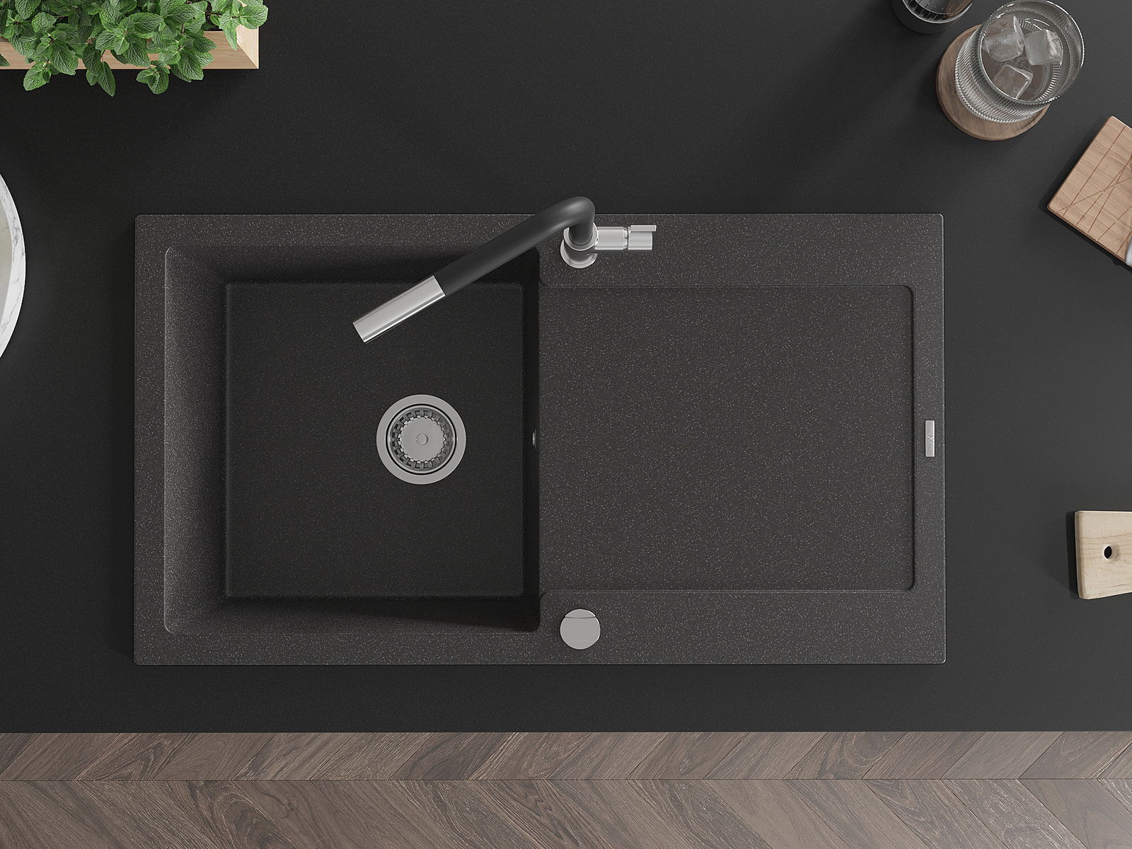 The sink is made of high quality granite. It is an elegant and, above all, practical complement to every kitchen, regardless of its style. High quality and granite durability ensure many years of use.