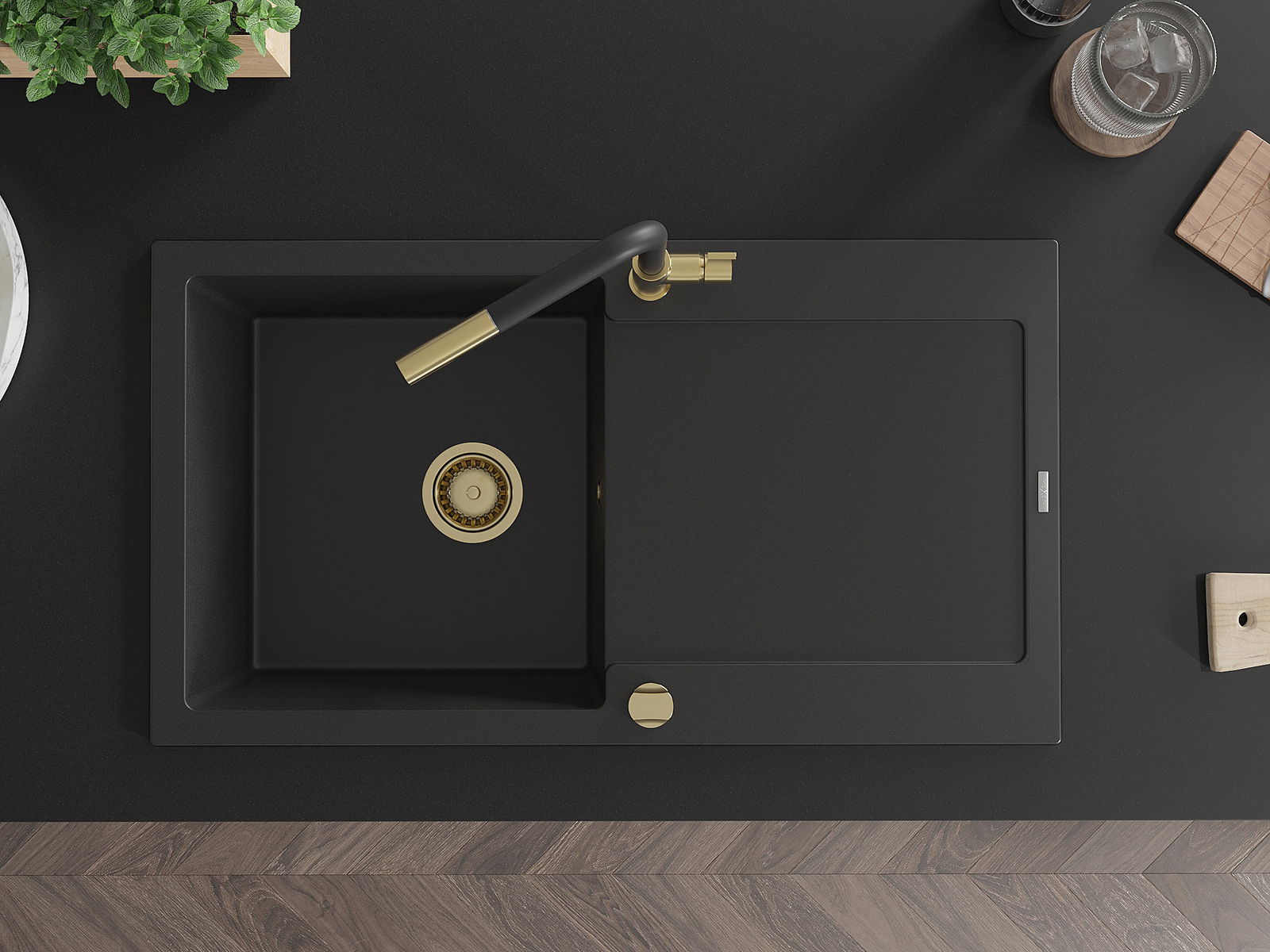 The sink is made of high quality granite. It is an elegant and, above all, practical complement to every kitchen, regardless of its style. High quality and granite durability ensure many years of use.