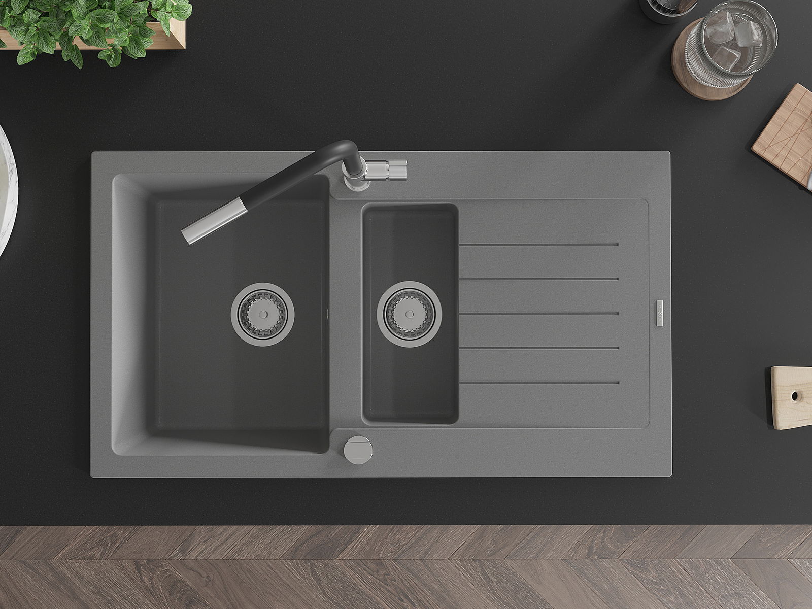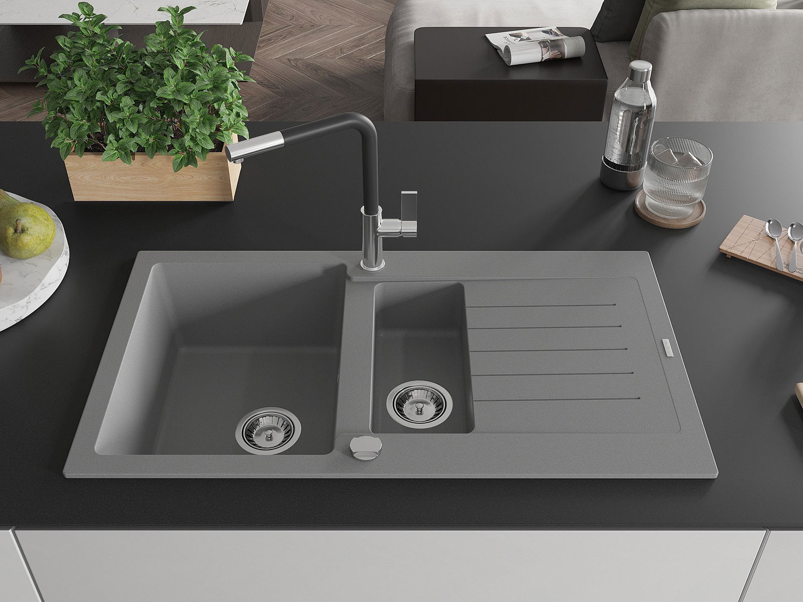 The sink is made of high quality granite. It is an elegant and, above all, practical complement to every kitchen, regardless of its style. High quality and granite durability ensure many years of use.