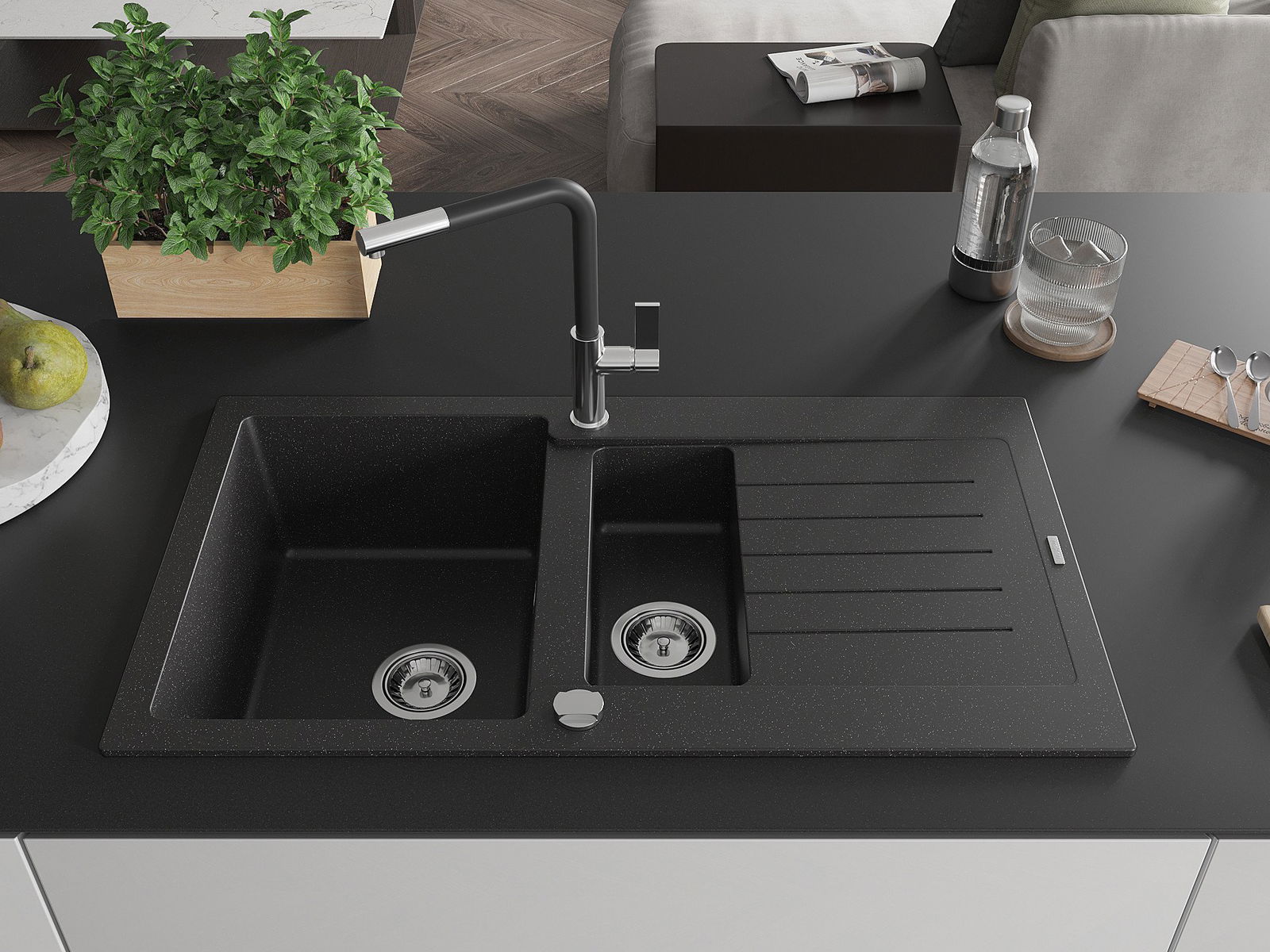 The sink is made of high quality granite. It is an elegant and, above all, practical complement to every kitchen, regardless of its style. High quality and granite durability ensure many years of use.
