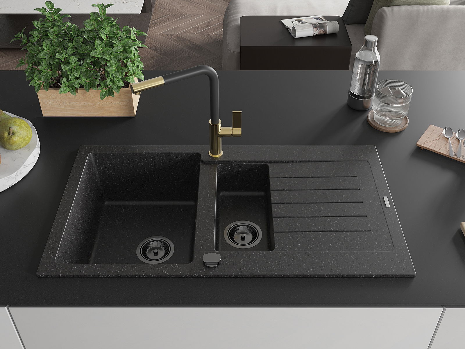 The sink is made of high quality granite. It is an elegant and, above all, practical complement to every kitchen, regardless of its style. High quality and granite durability ensure many years of use.