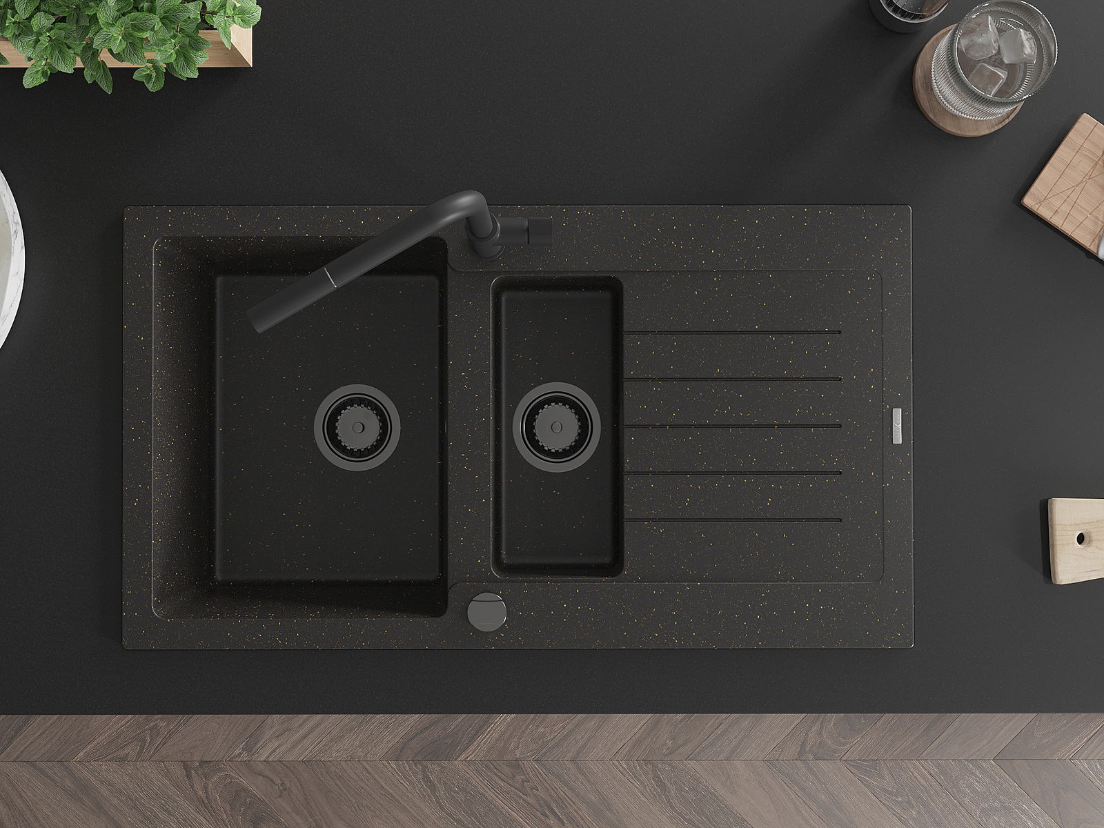The sink is made of high quality granite. It is an elegant and, above all, practical complement to every kitchen, regardless of its style. High quality and granite durability ensure many years of use.