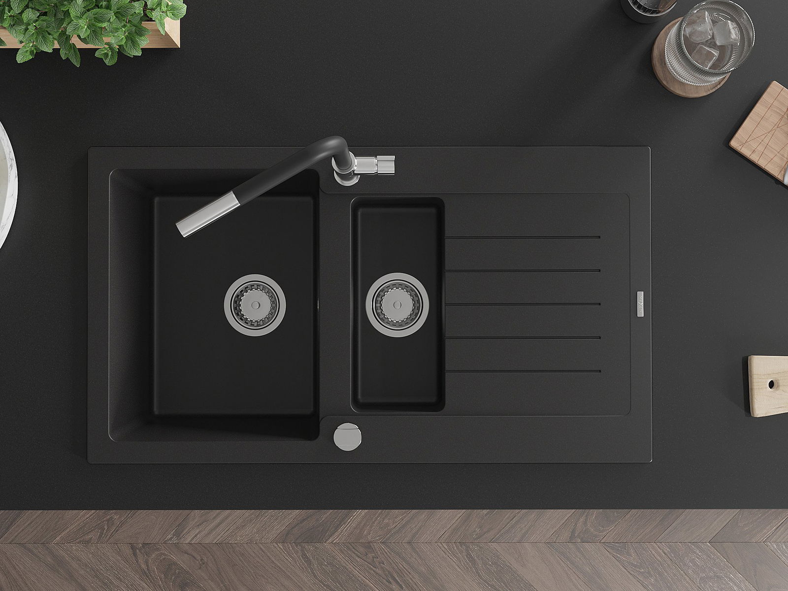 The sink is made of high quality granite. It is an elegant and, above all, practical complement to every kitchen, regardless of its style. High quality and granite durability ensure many years of use.
