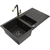 Mexen Matias granite sink 1.5-bowl with drainer and Flora kitchen tap, black - 6502-77-670401-57-B
