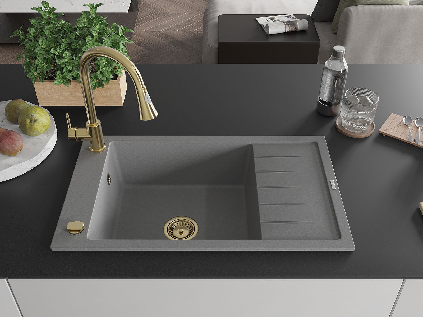 The sink is made of high quality granite. It is an elegant and, above all, practical complement to every kitchen, regardless of its style. High quality and granite durability ensure many years of use.