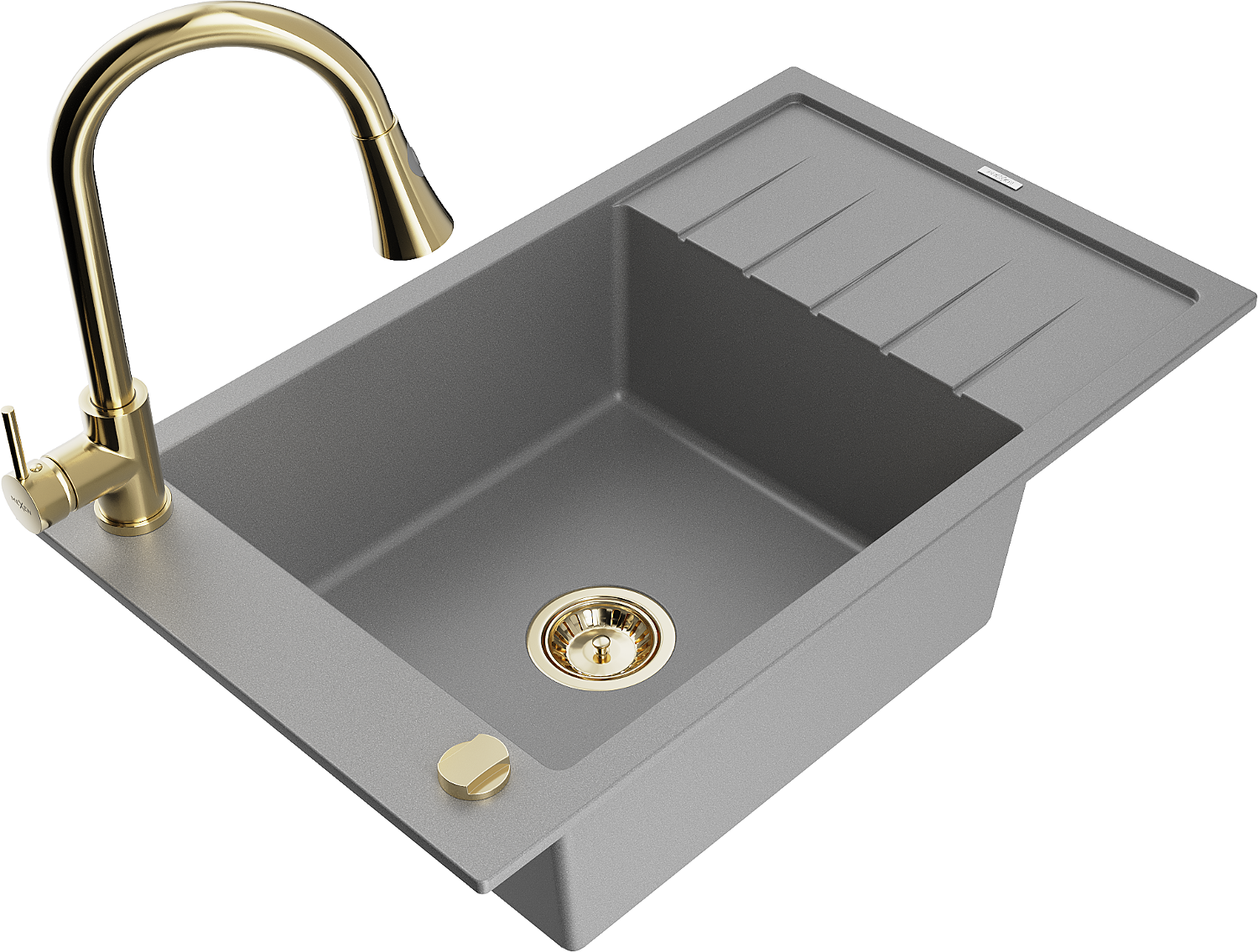 Mexen Elias 1-bowl granite sink with drainer and Elia kitchen tap, grey - 6511-71-670101-50
