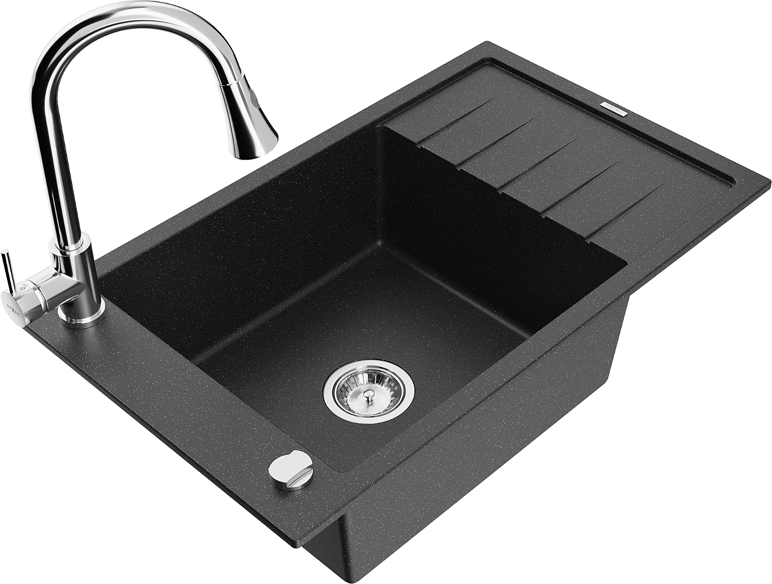 Mexen Elias 1-bowl granite sink with drainer and Elia kitchen tap, black/silver metallic - 6511-73-670101-00