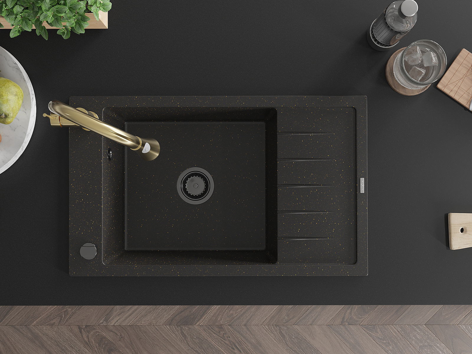 The sink is made of high quality granite. It is an elegant and, above all, practical complement to every kitchen, regardless of its style. High quality and granite durability ensure many years of use.