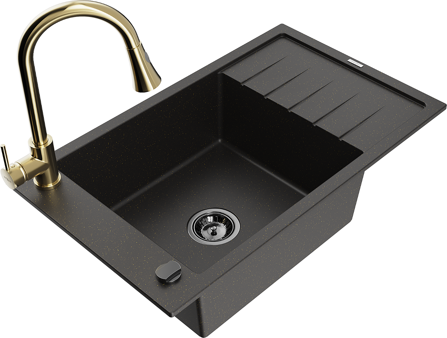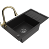 Mexen Elias 1-bowl granite sink with drainer and Elia kitchen tap, black/gold metallic - 6511-75-670101-50-B