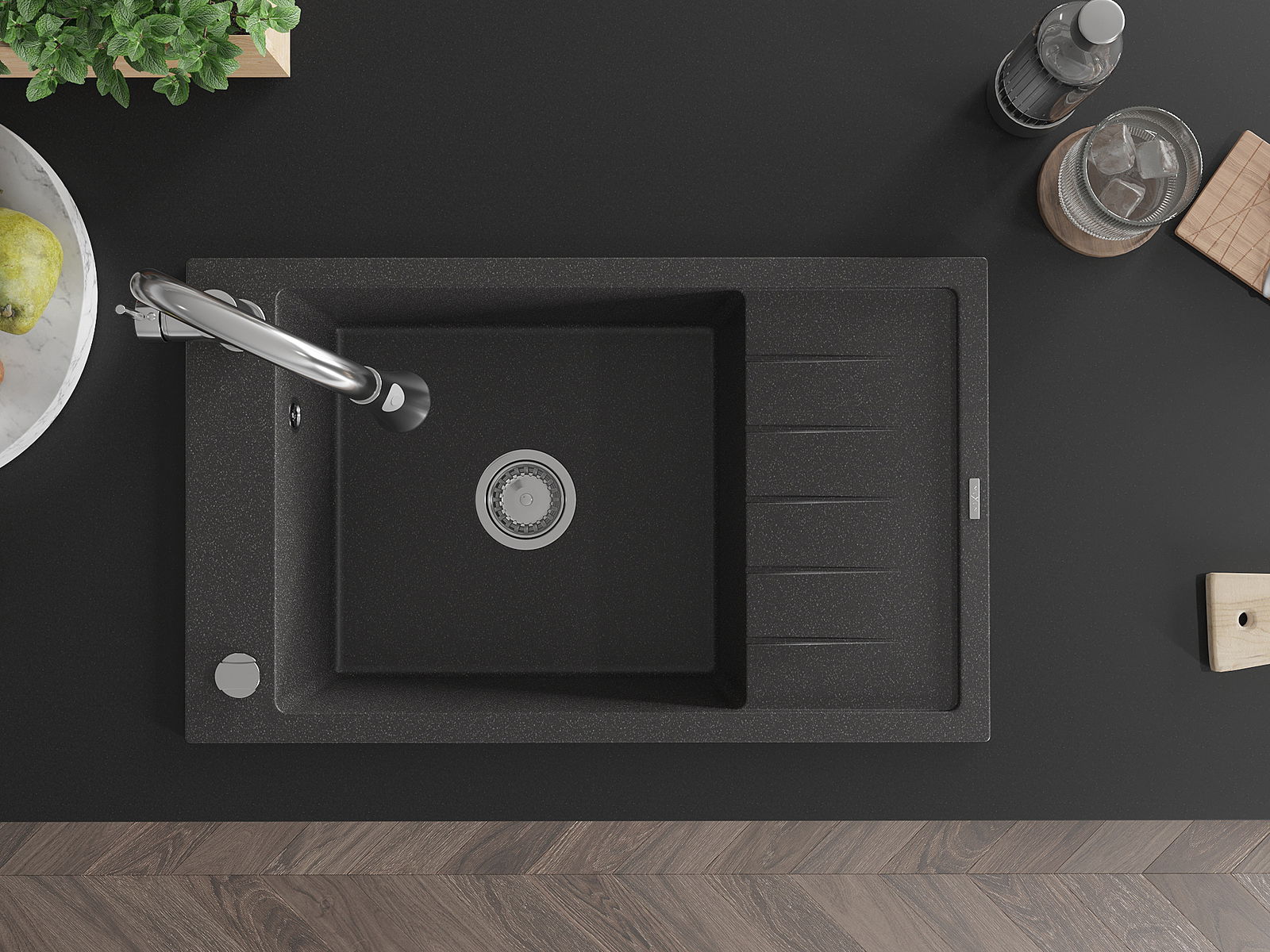 The sink is made of high quality granite. It is an elegant and, above all, practical complement to every kitchen, regardless of its style. High quality and granite durability ensure many years of use.