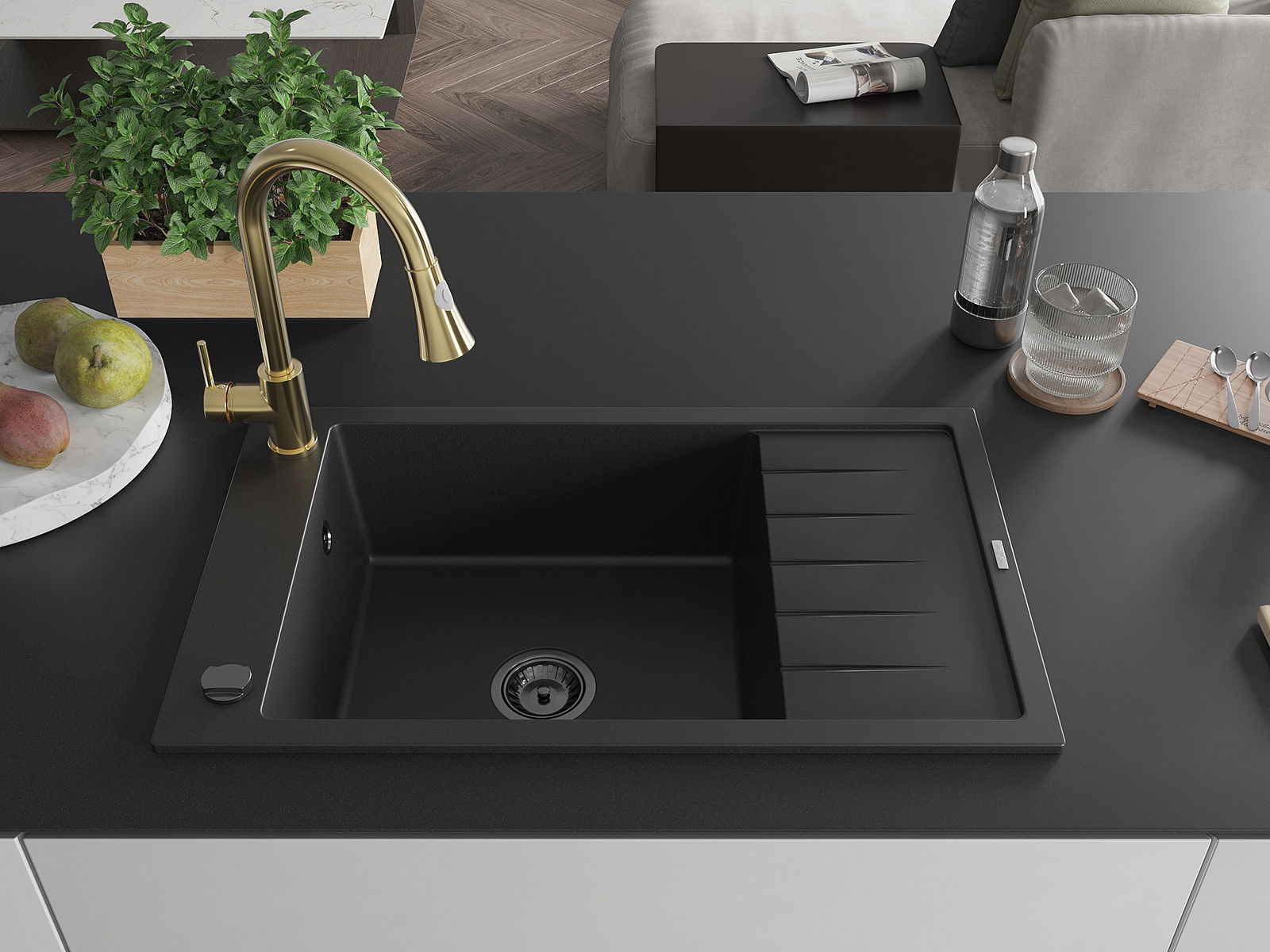 The sink is made of high quality granite. It is an elegant and, above all, practical complement to every kitchen, regardless of its style. High quality and granite durability ensure many years of use.