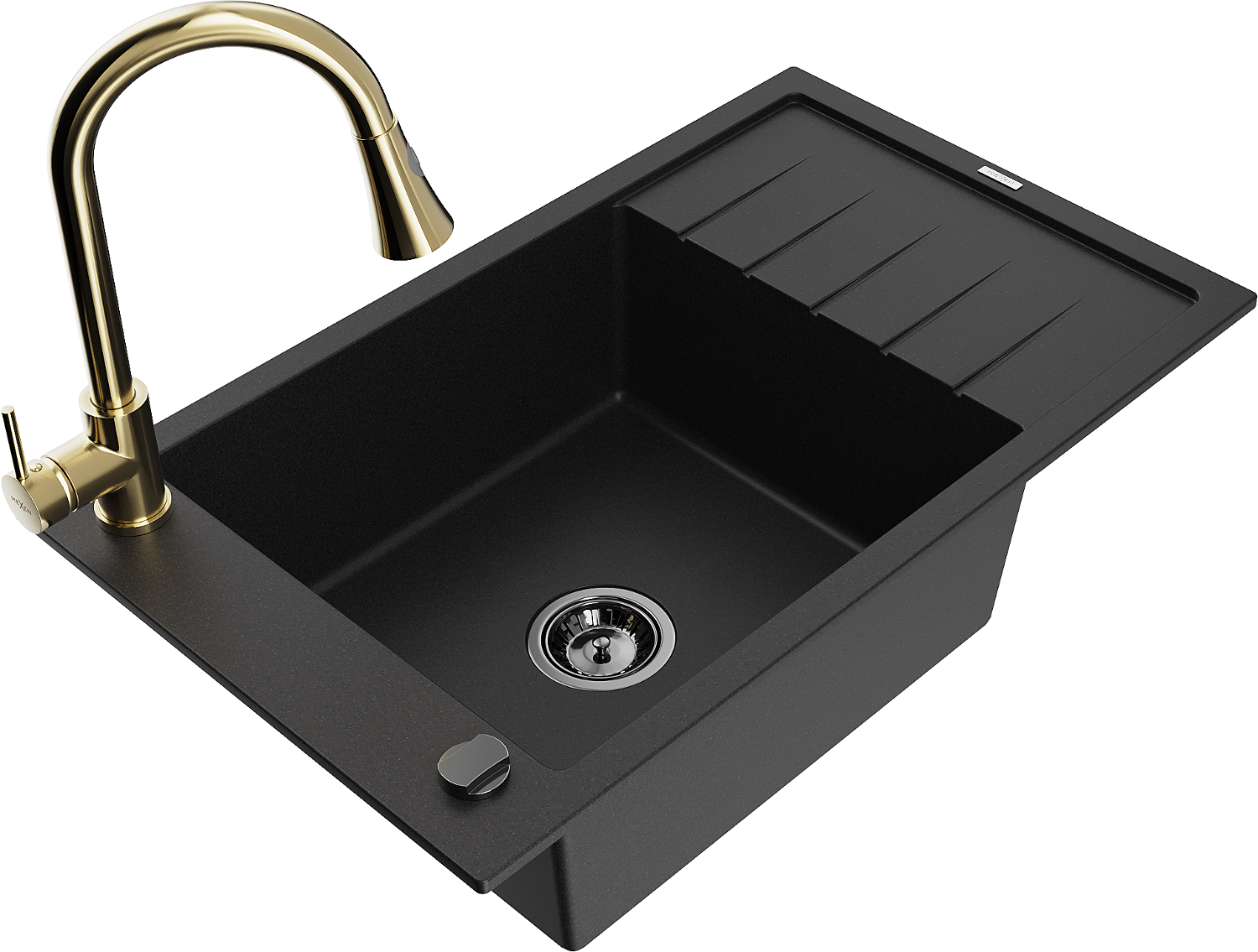 Mexen Elias granite sink 1-bowl with drainer and kitchen tap Elia, black - 6511-77-670101-50-B