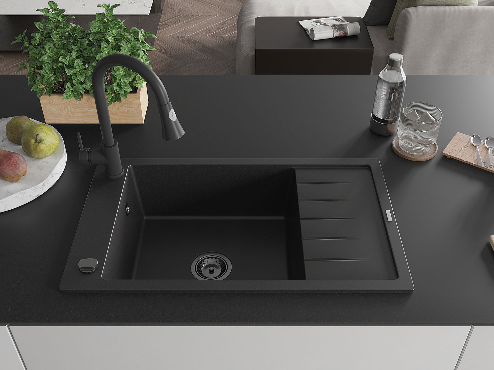 The sink is made of high quality granite. It is an elegant and, above all, practical complement to every kitchen, regardless of its style. High quality and granite durability ensure many years of use.