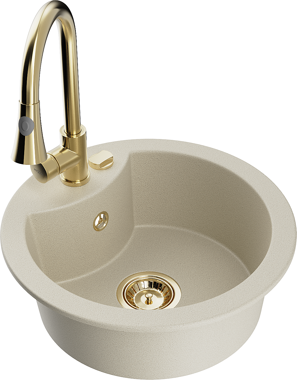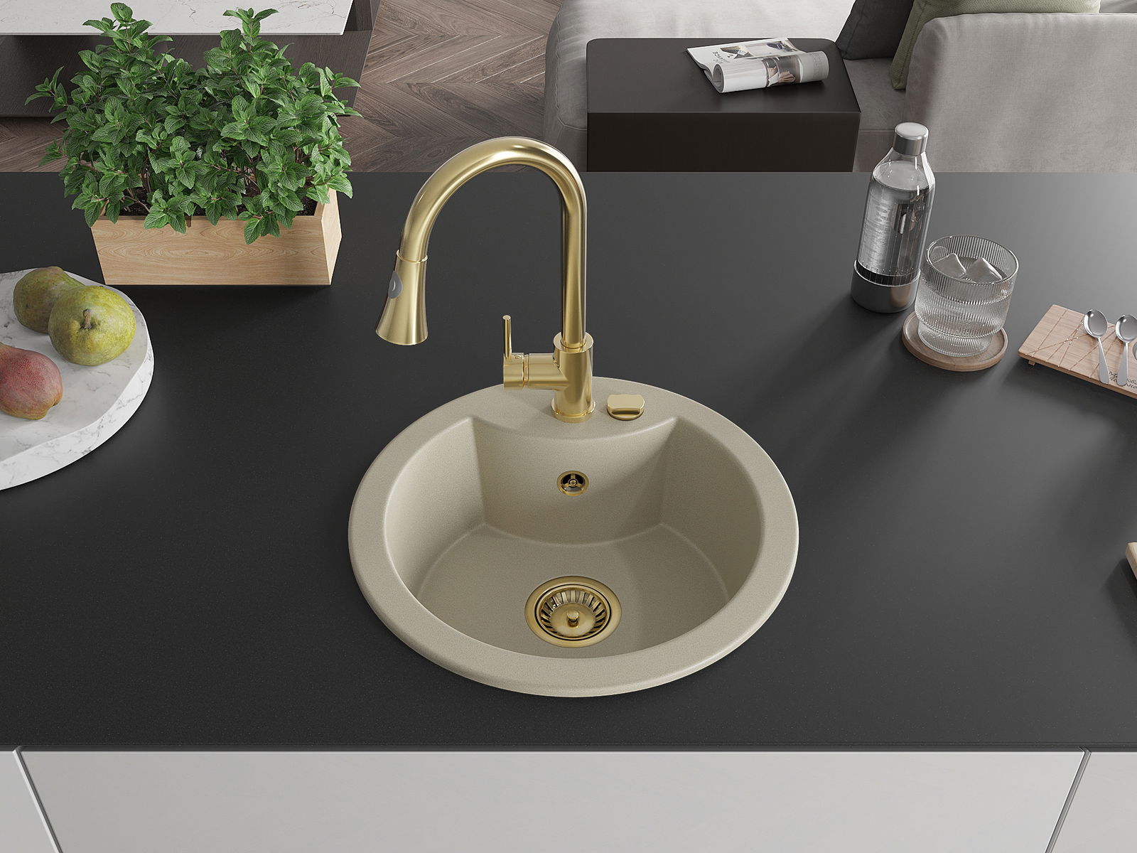 Mexen Diego 1-bowl granite sink with Elia kitchen tap, beige - 6512-69-670101-50