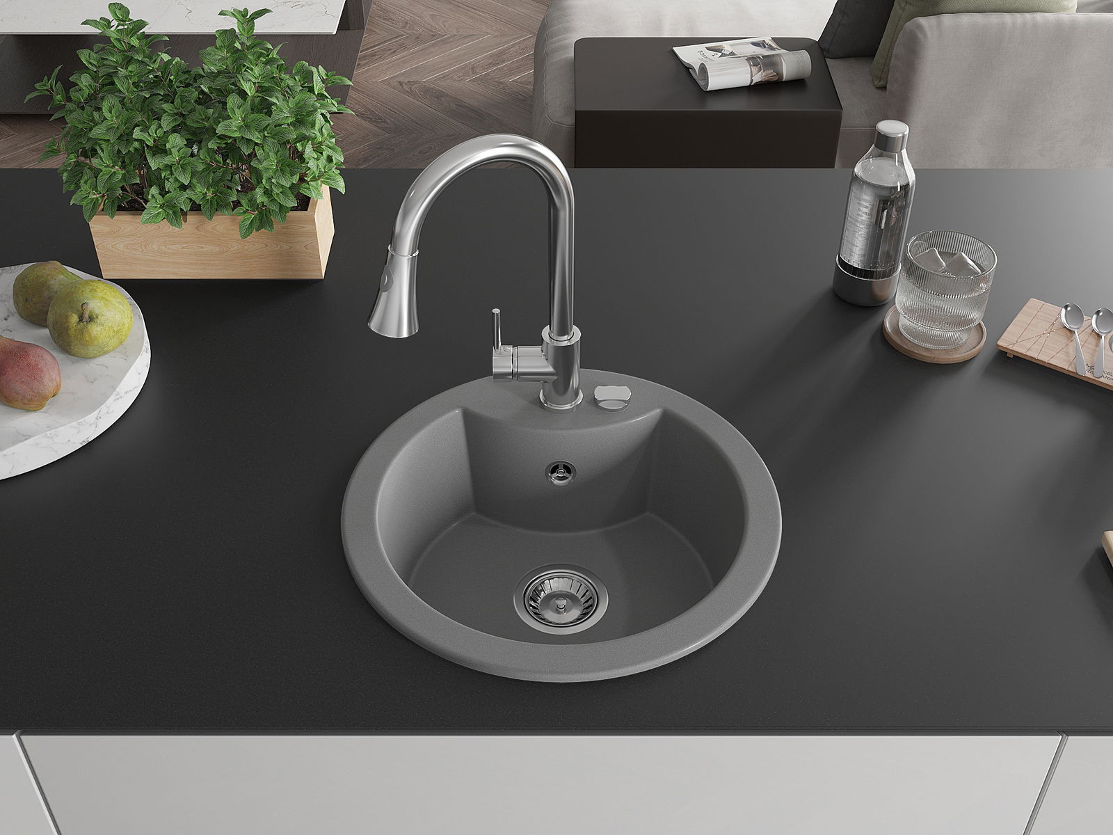 The sink is made of high quality granite. It is an elegant and, above all, practical complement to every kitchen, regardless of its style. High quality and granite durability ensure many years of use.