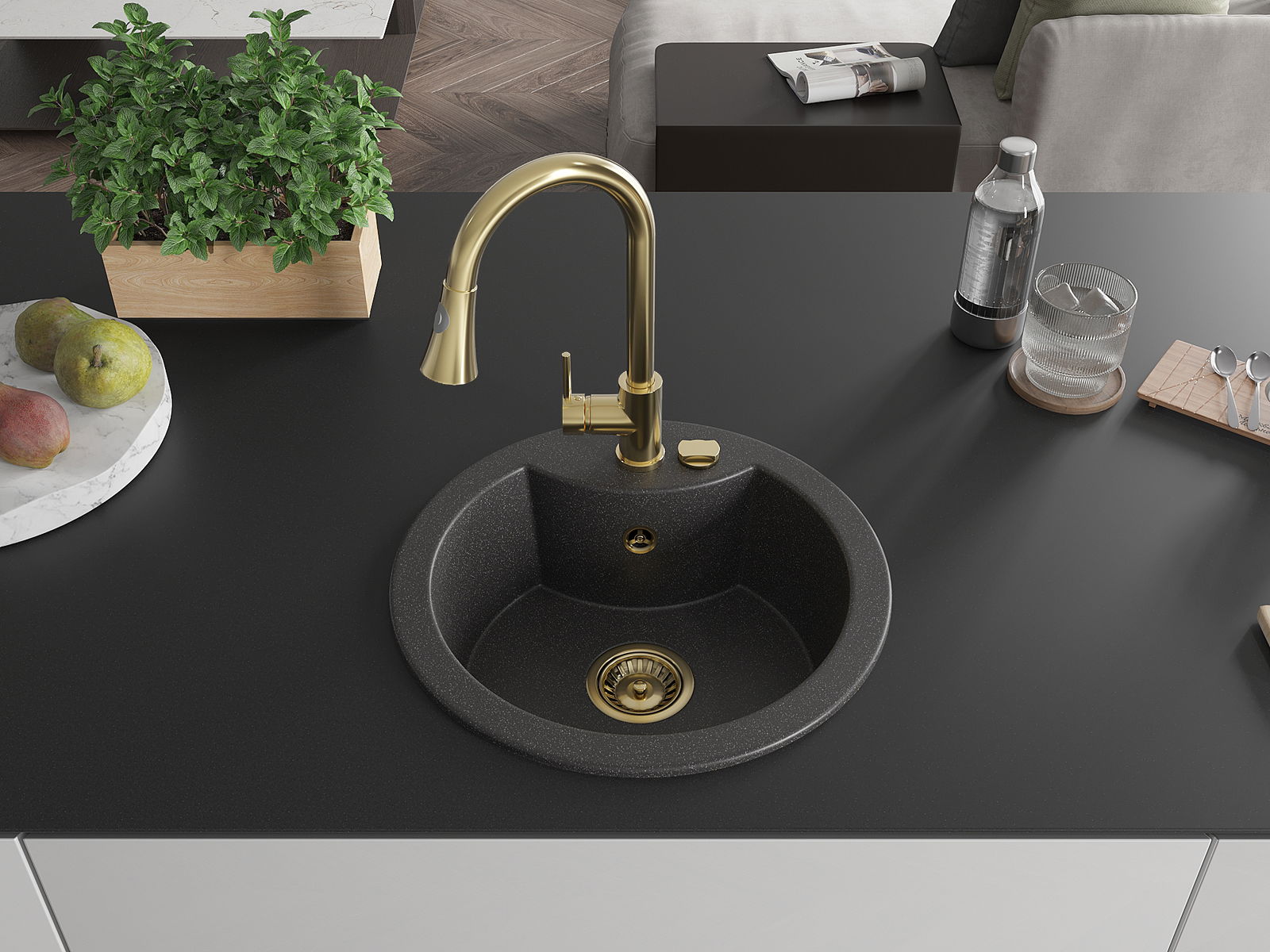 The sink is made of high quality granite. It is an elegant and, above all, practical complement to every kitchen, regardless of its style. High quality and granite durability ensure many years of use.