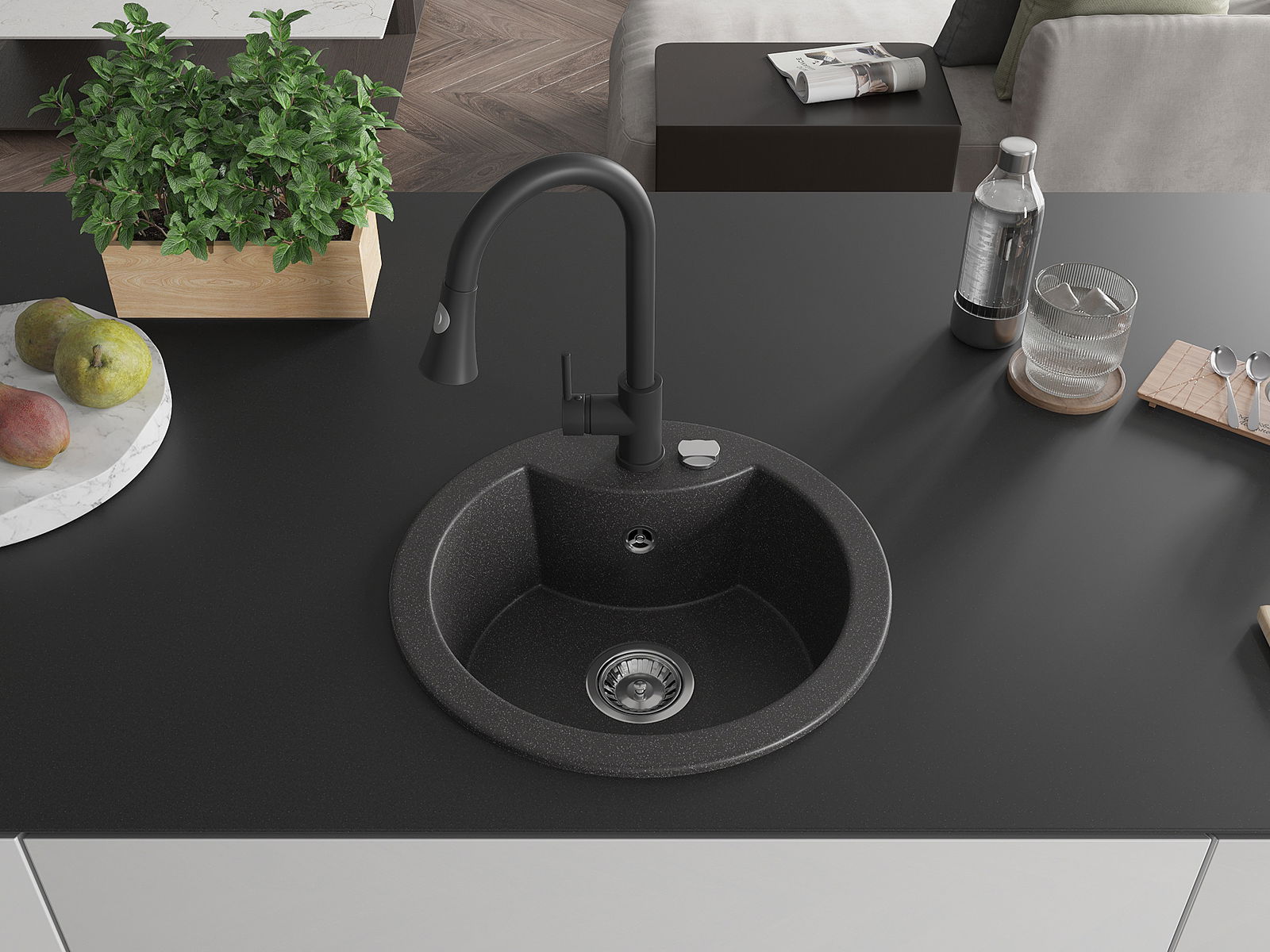 The sink is made of high quality granite. It is an elegant and, above all, practical complement to every kitchen, regardless of its style. High quality and granite durability ensure many years of use.