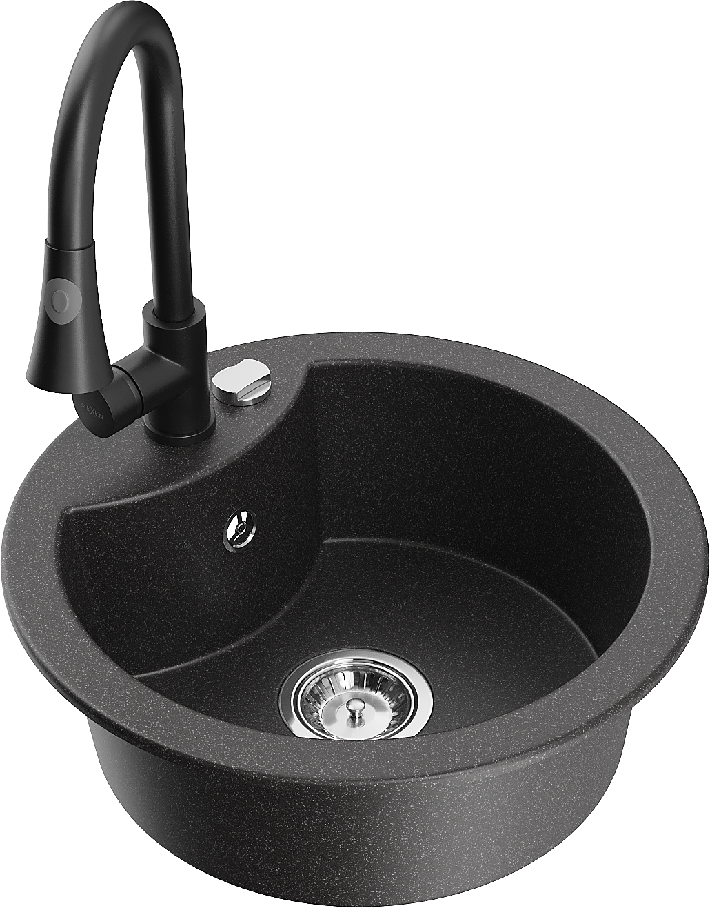 Mexen Diego granite sink 1-bowl with Elia kitchen tap, speckled black - 6512-76-670101-70
