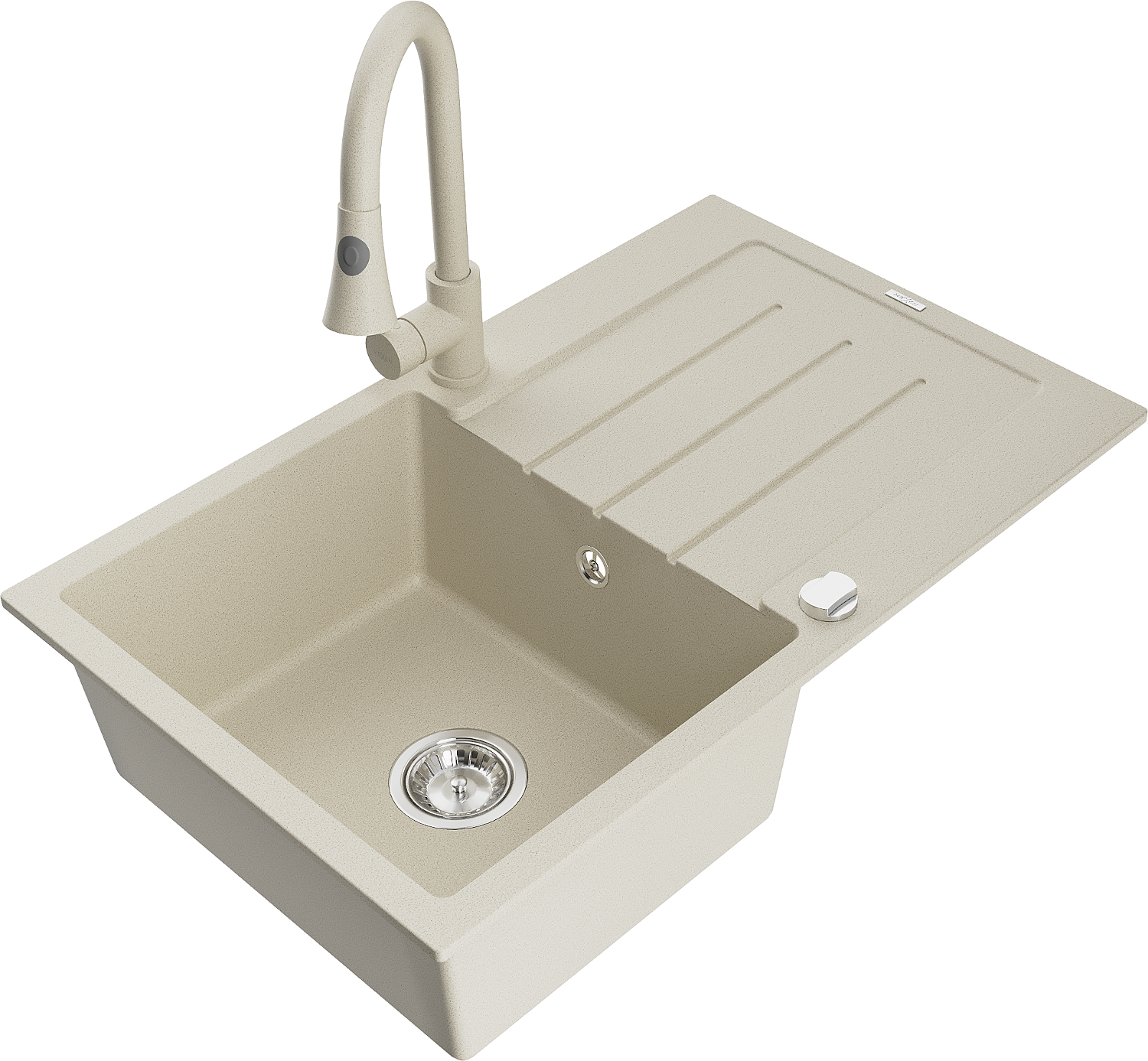 The sink is made of high quality granite. It is an elegant and, above all, practical complement to every kitchen, regardless of its style. High quality and granite durability ensure many years of use.