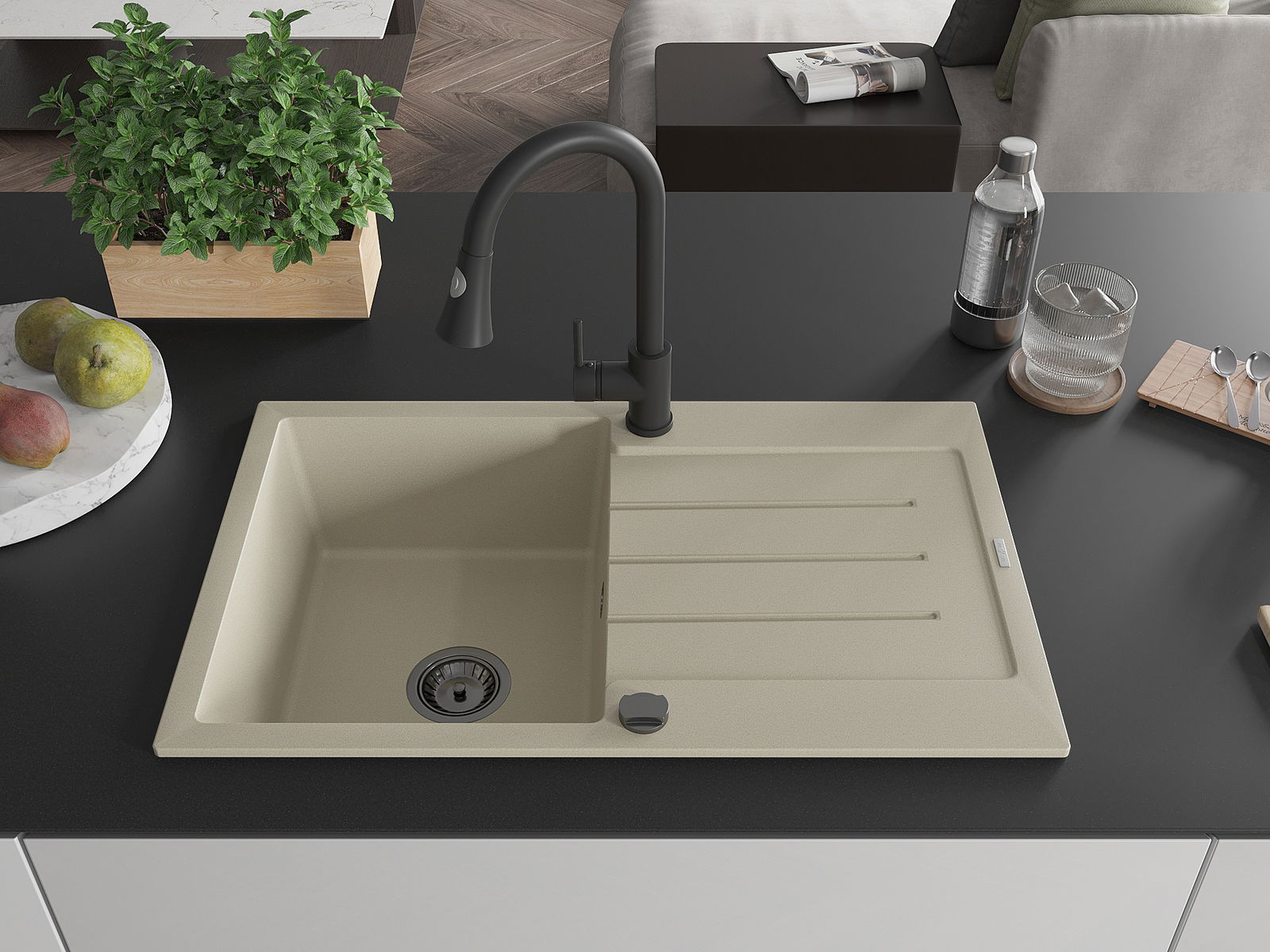 The surface of the sink is resistant to stains and discoloration, thanks to which it is easy to clean and retains its color for a long time. Aesthetic and practically complementing every kitchen.