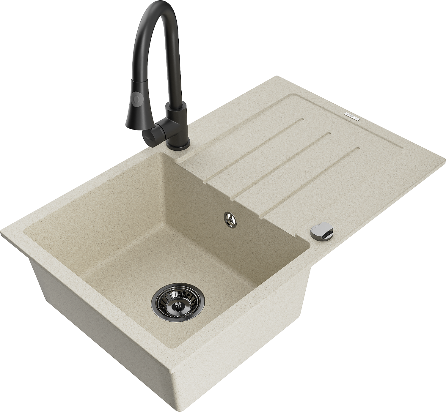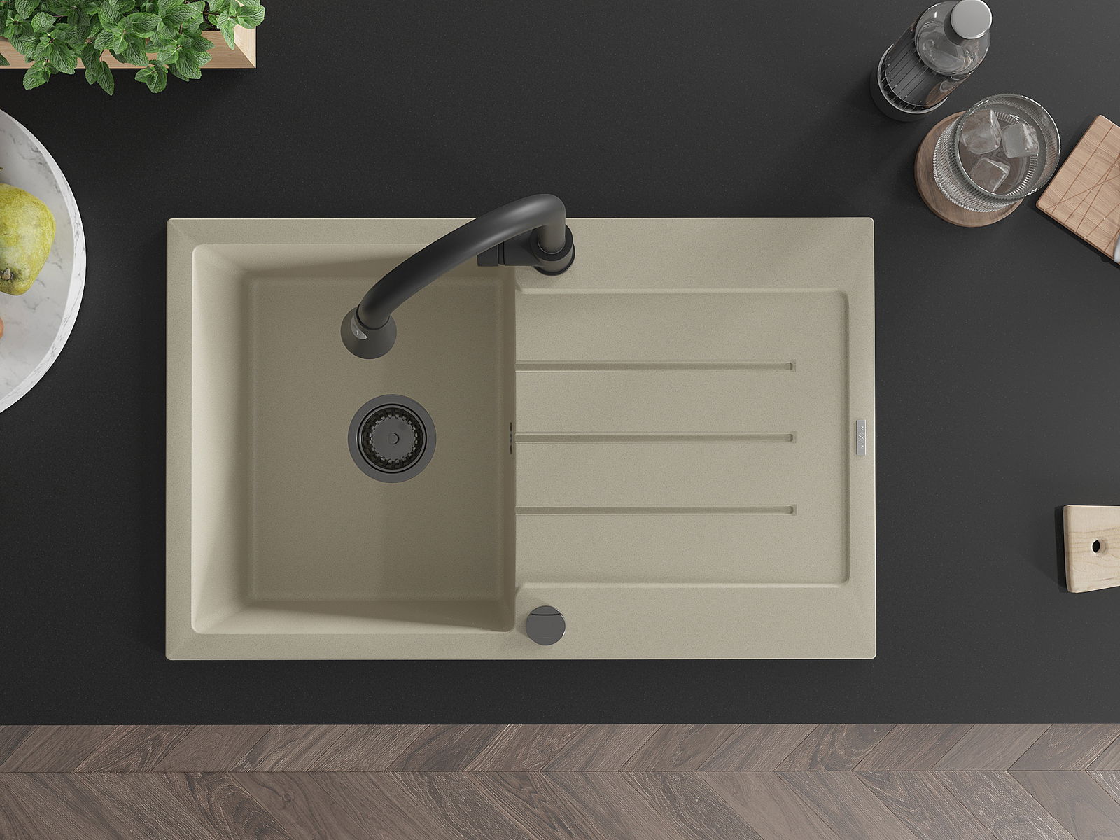 The sink is made of high quality granite. It is an elegant and, above all, practical complement to every kitchen, regardless of its style. High quality and granite durability ensure many years of use.