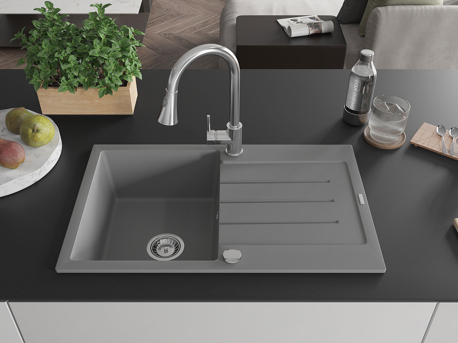The sink is made of high quality granite. It is an elegant and, above all, practical complement to every kitchen, regardless of its style. High quality and granite durability ensure many years of use.