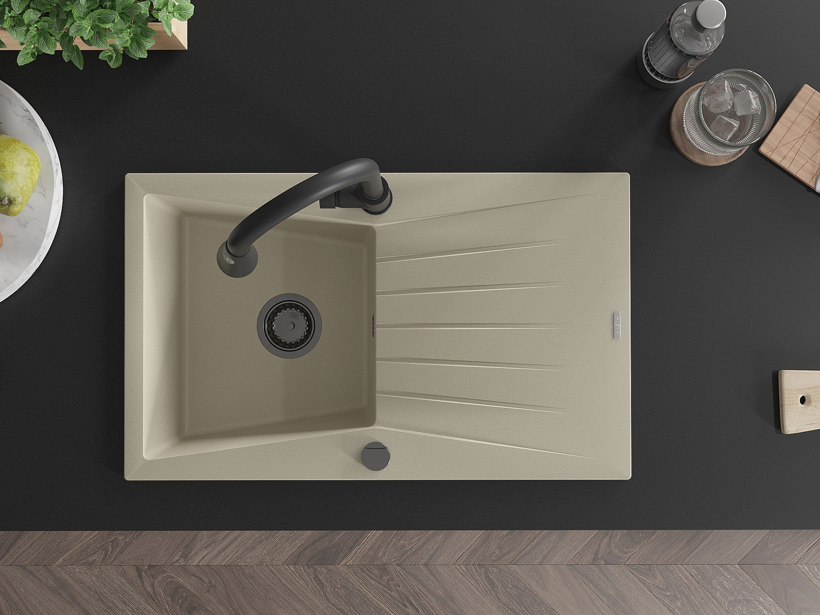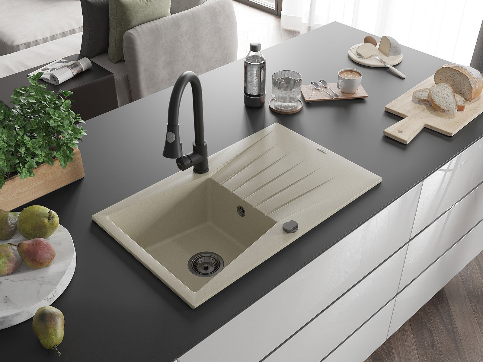 The surface of the sink is resistant to stains and discoloration, thanks to which it is easy to clean and retains its color for a long time. Aesthetic and practically complementing every kitchen.