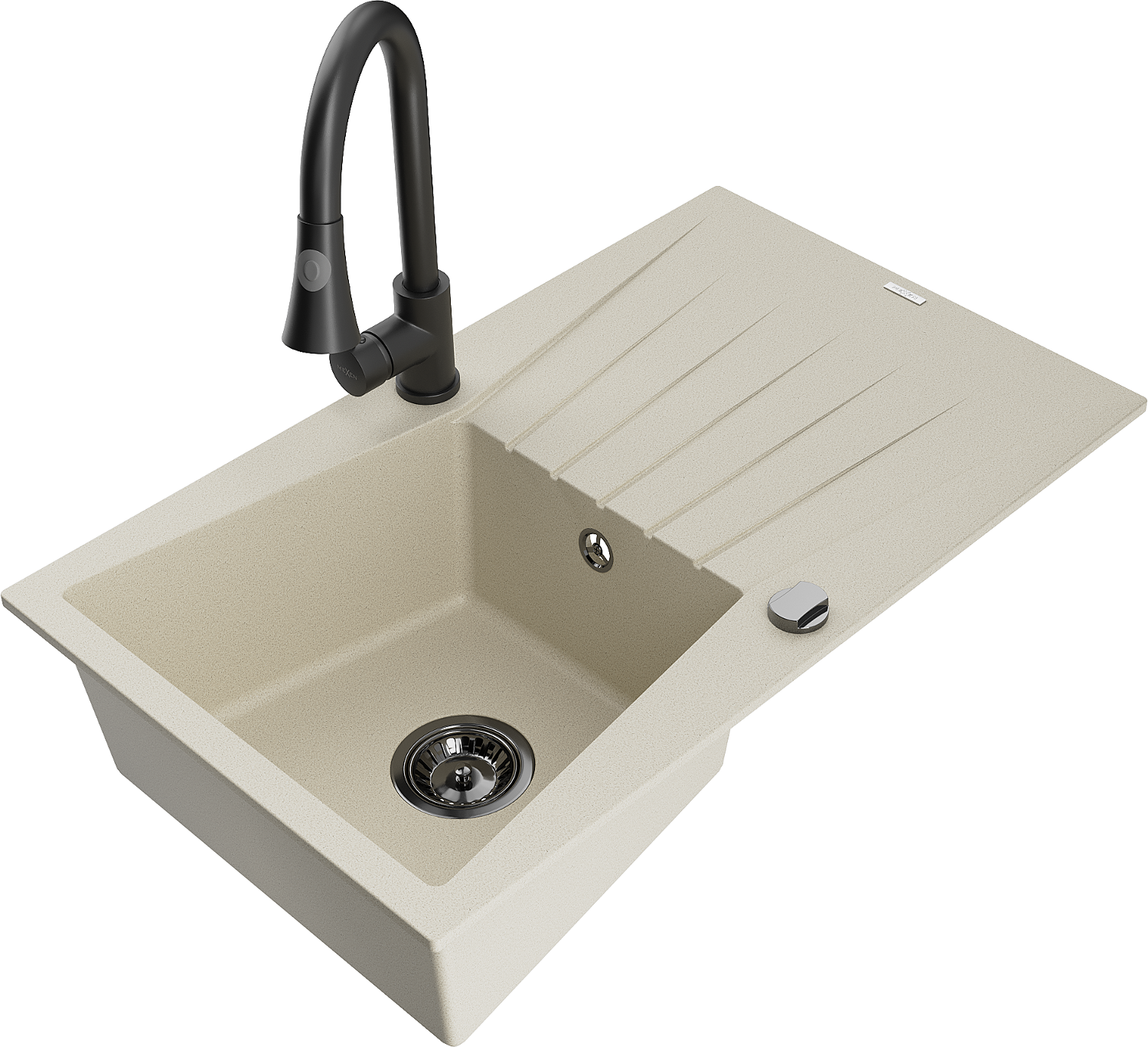 The sink is made of high quality granite. It is an elegant and, above all, practical complement to every kitchen, regardless of its style. High quality and granite durability ensure many years of use.