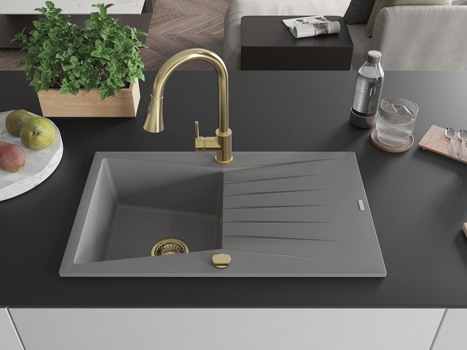The sink is made of high quality granite. It is an elegant and, above all, practical complement to every kitchen, regardless of its style. High quality and granite durability ensure many years of use.