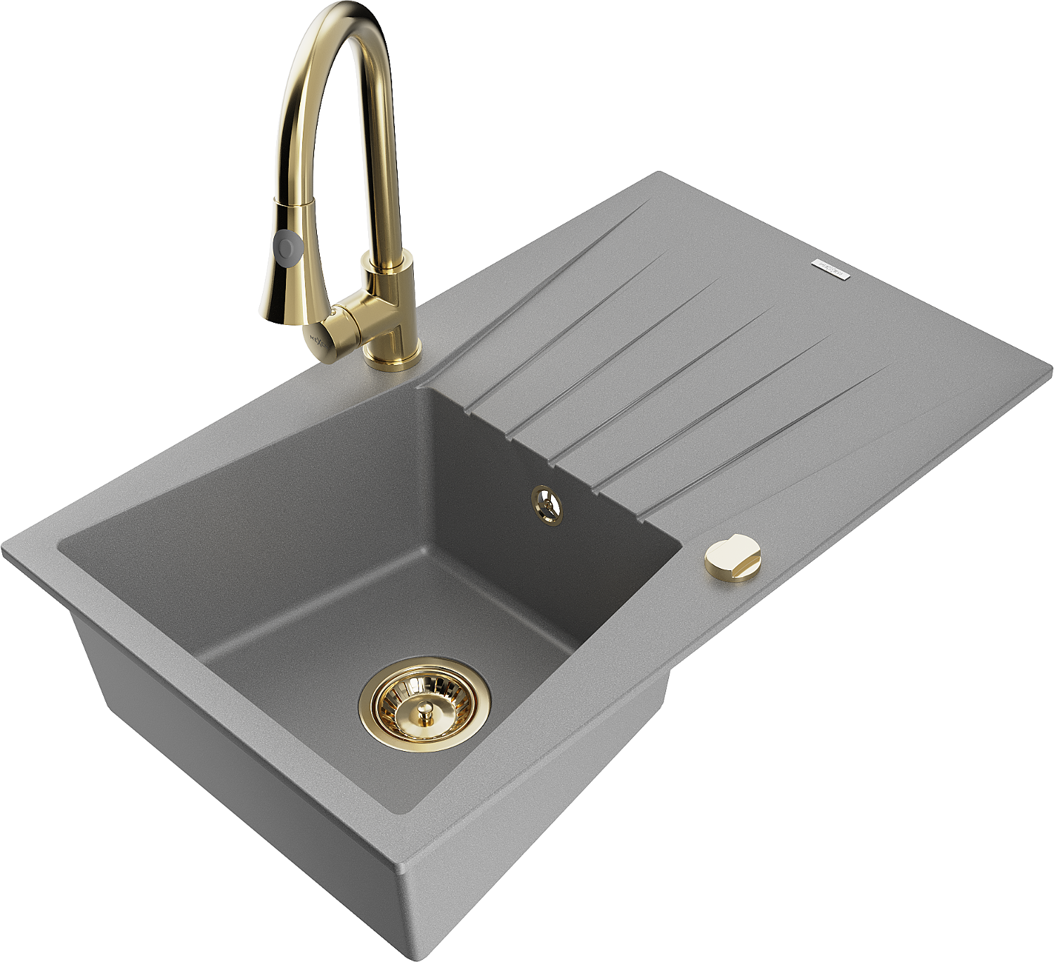 Mexen Cesar 1-bowl granite sink with drainer and Elia kitchen tap, grey - 6514-71-670101-50