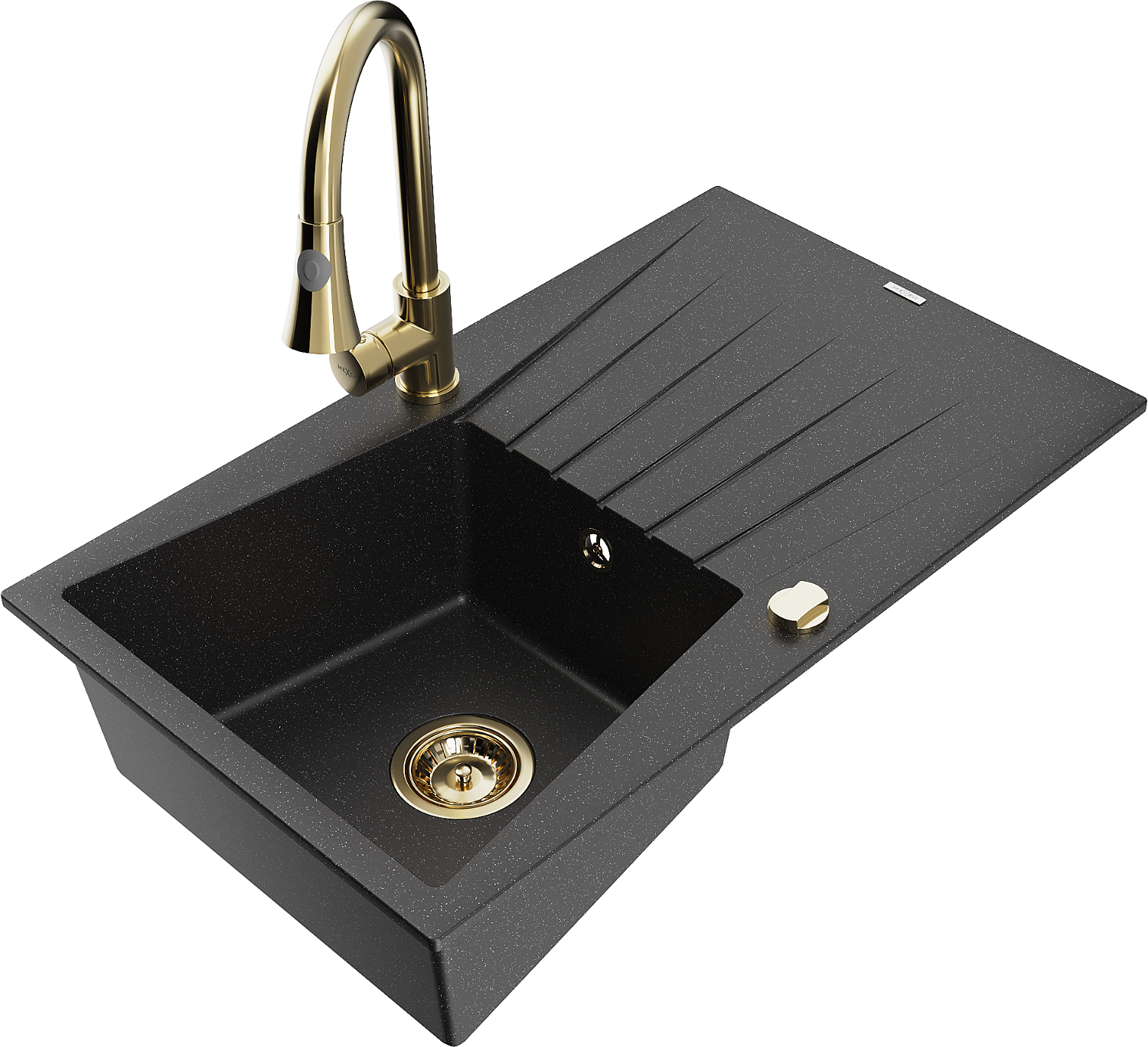 Mexen Cesar 1-bowl granite sink with drainer and Elia kitchen tap, black/silver metallic - 6514-73-670101-50