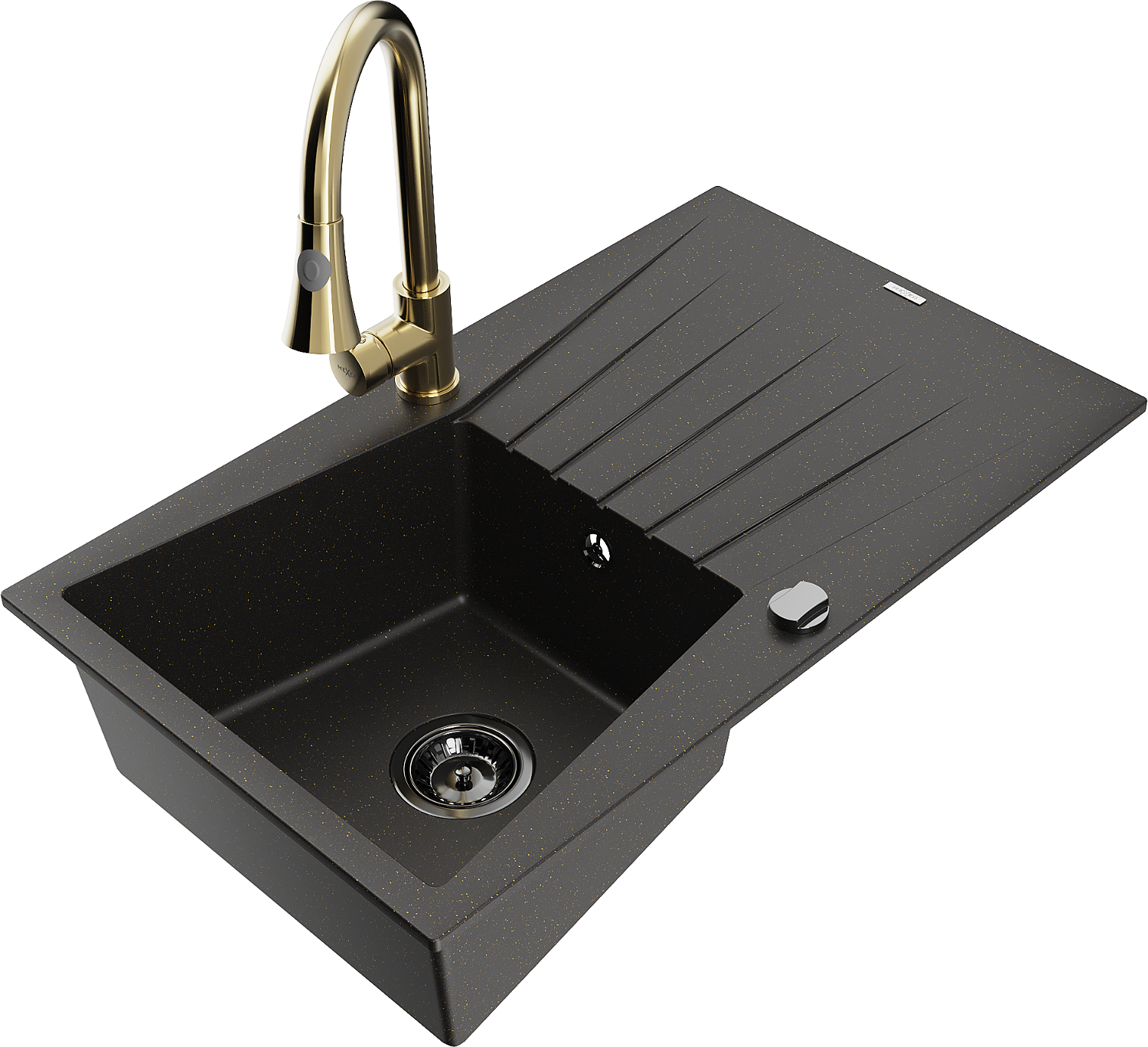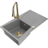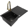 Mexen Cesar granite sink 1-bowl with drainer and Elia kitchen tap, black/gold metallic - 6514-75-670101-50-B