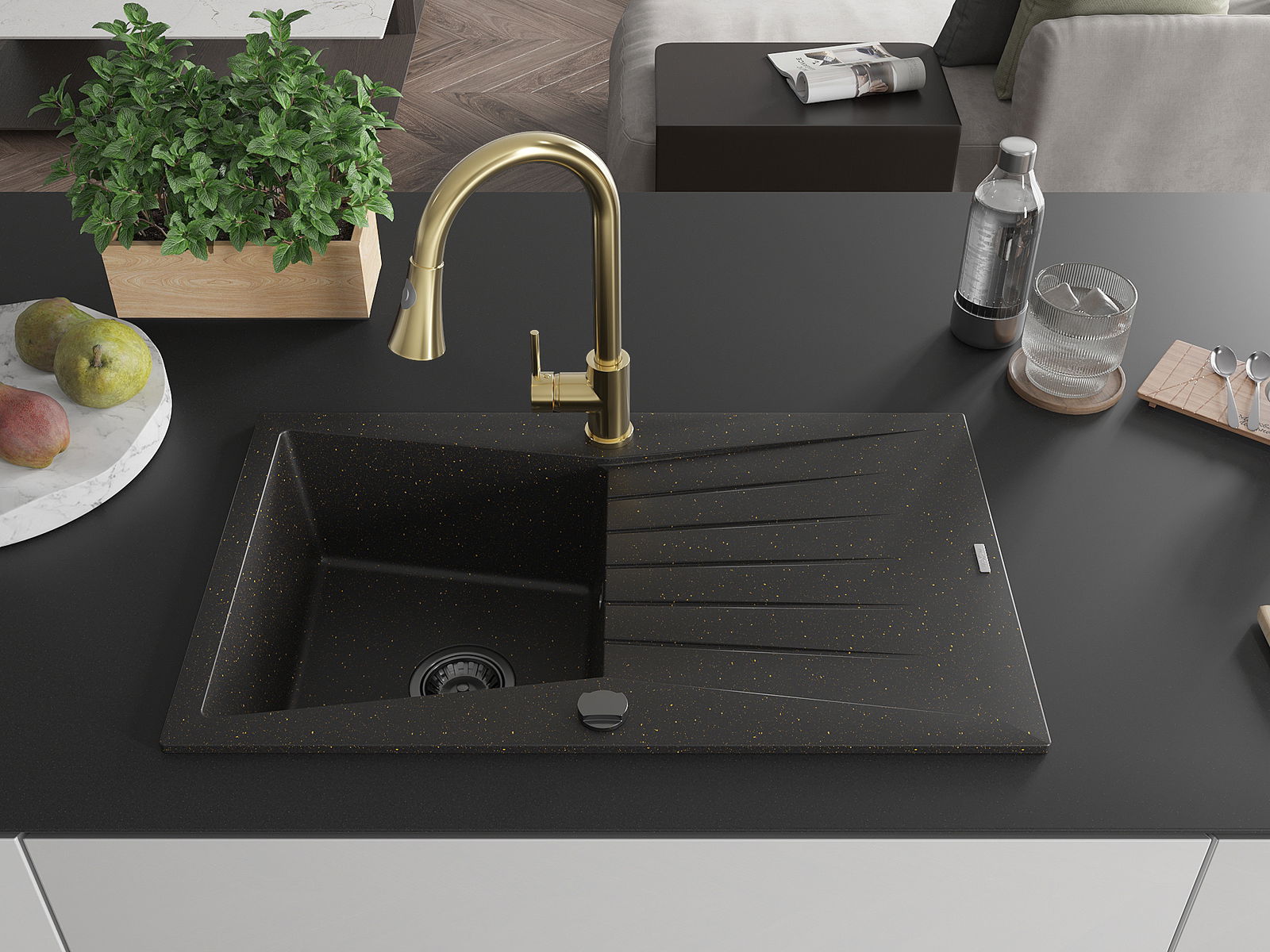 The sink is made from high-quality granite. It serves as an elegant and, above all, practical addition to any kitchen, regardless of its style. The high quality and durability of granite ensure many years of use.