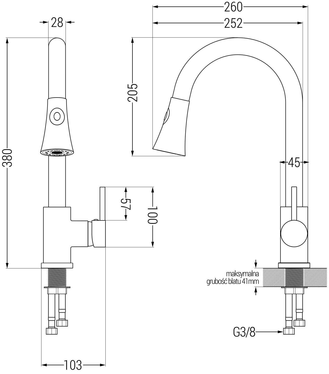 Taps with a pull-out spout are a practical solution in the kitchen. With the help of the pull-out head, we can reach every corner of the sink and large pots, thoroughly wash vegetables and fruits, without splashing the area around the sink.