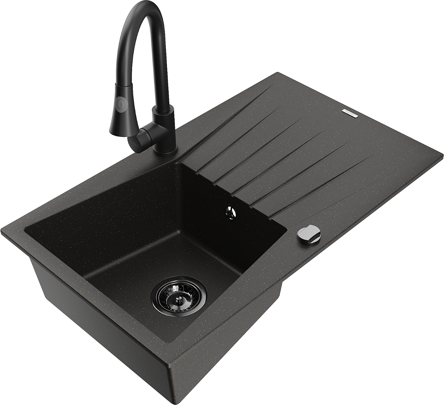 Mexen Cesar granite sink 1-bowl with drainer and kitchen tap Elia, black/gold metallic - 6514-75-670101-70-B
