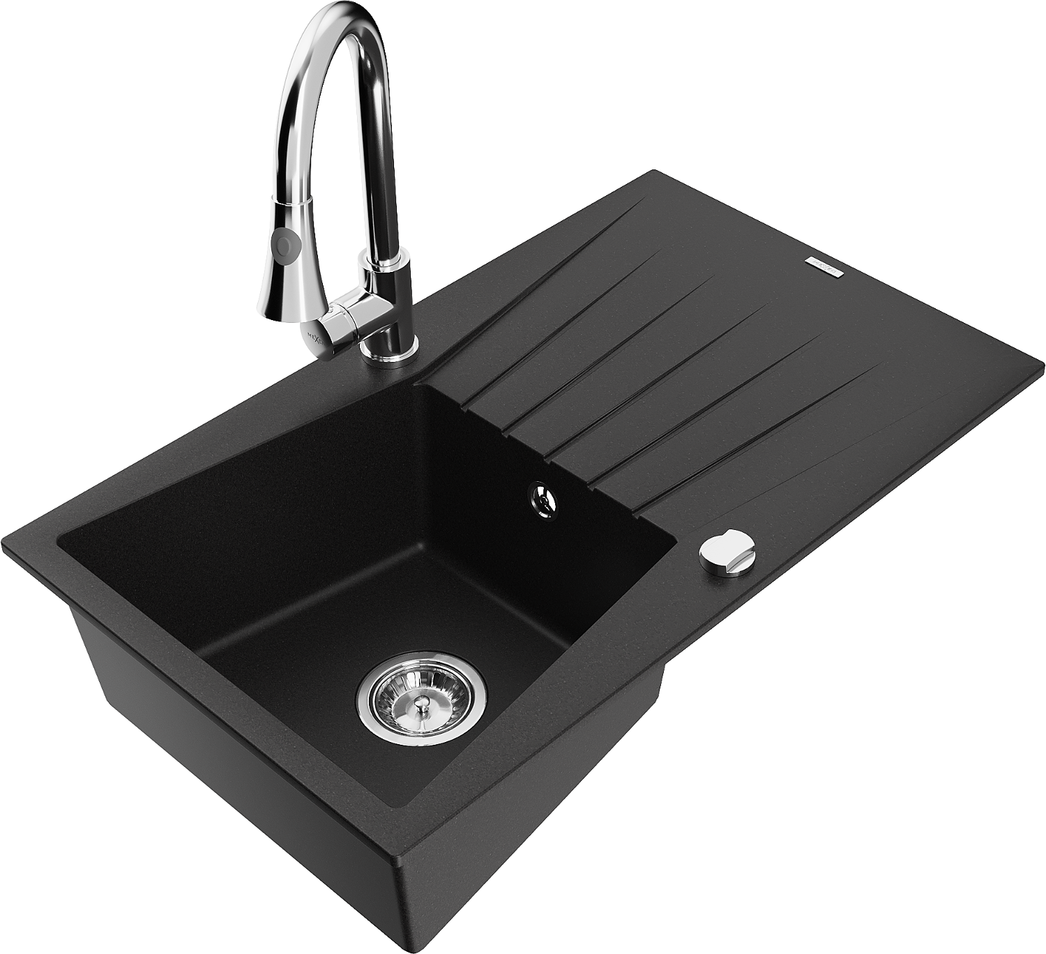 Mexen Cesar 1-bowl granite sink with drainer and Elia kitchen tap, black - 6514-77-670101-00