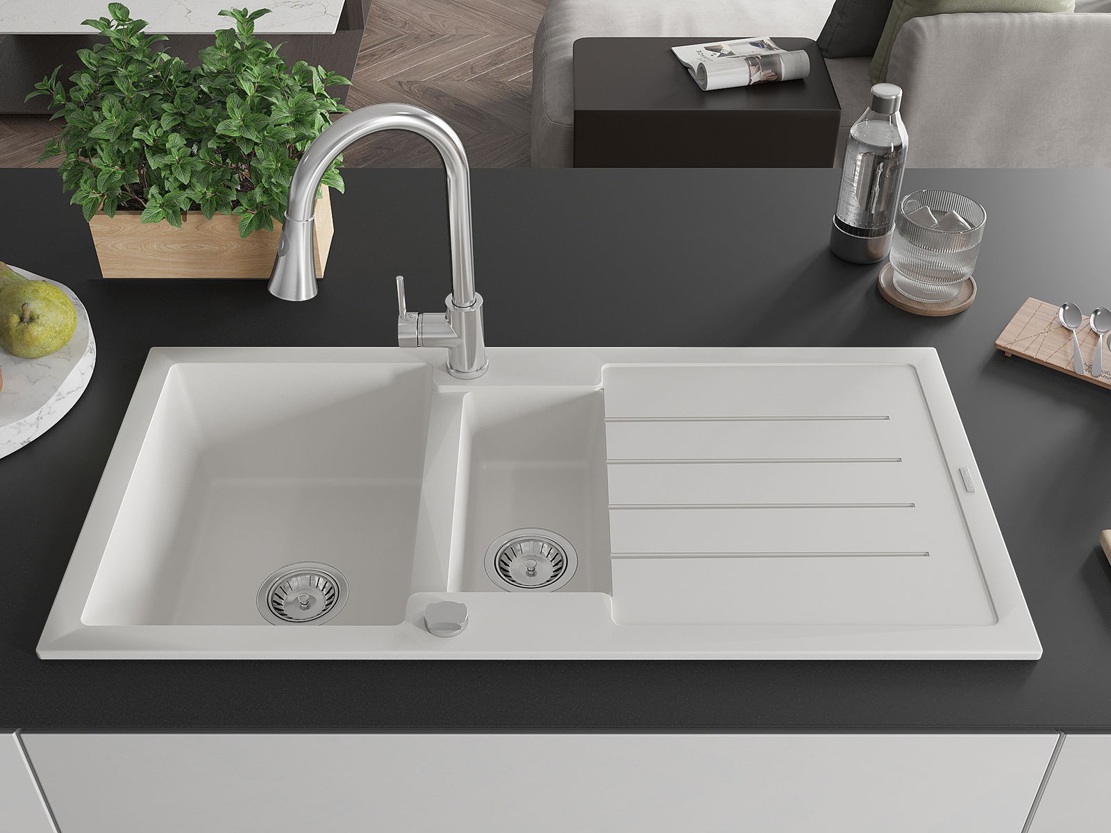 The surface of the sink is resistant to stains and discoloration, thanks to which it is easy to clean and retains its color for a long time. Aesthetic and practically complementing every kitchen.