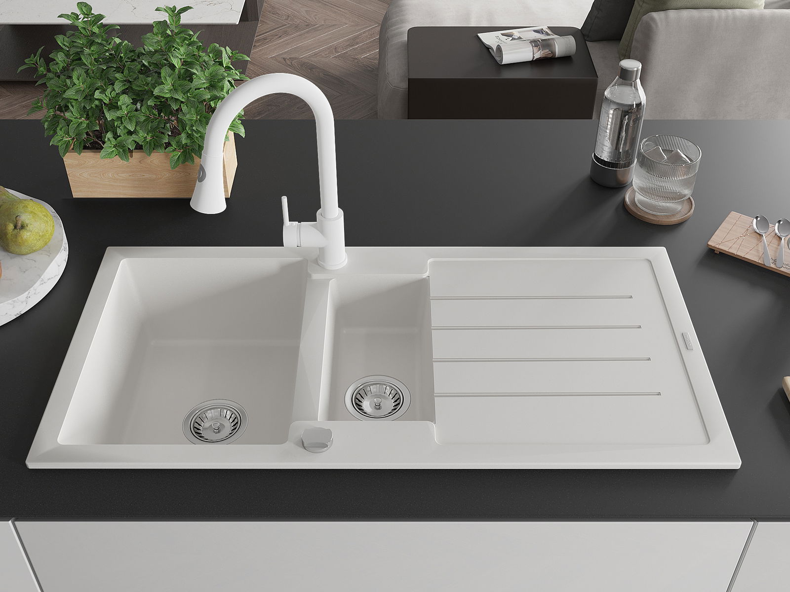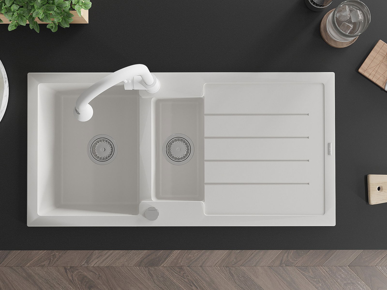 The surface of the sink is resistant to stains and discoloration, thanks to which it is easy to clean and retains its color for a long time. Aesthetic and practically complementing every kitchen.