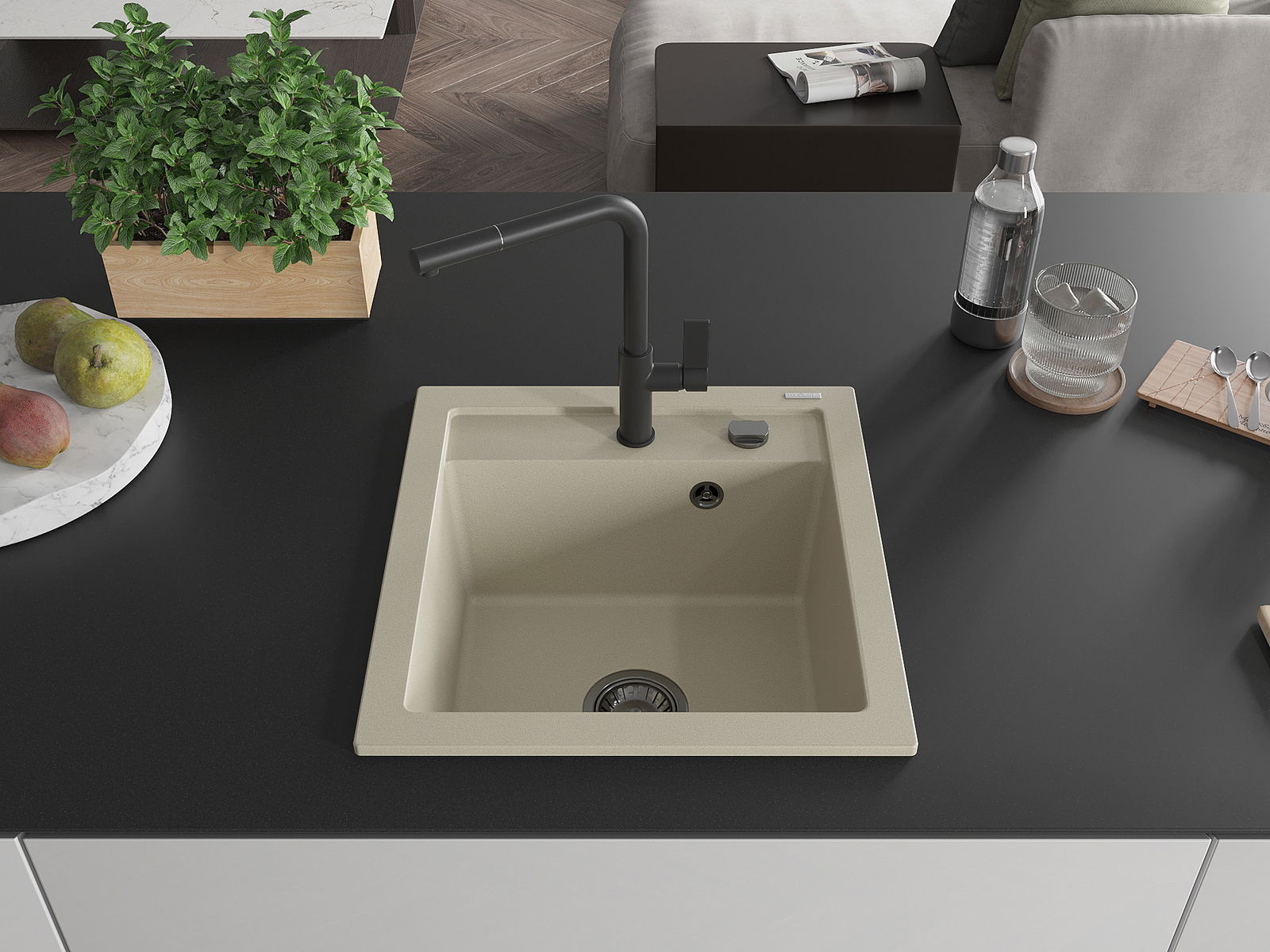 The sink is made of high quality granite. It is an elegant and, above all, practical complement to every kitchen, regardless of its style. High quality and granite durability ensure many years of use.