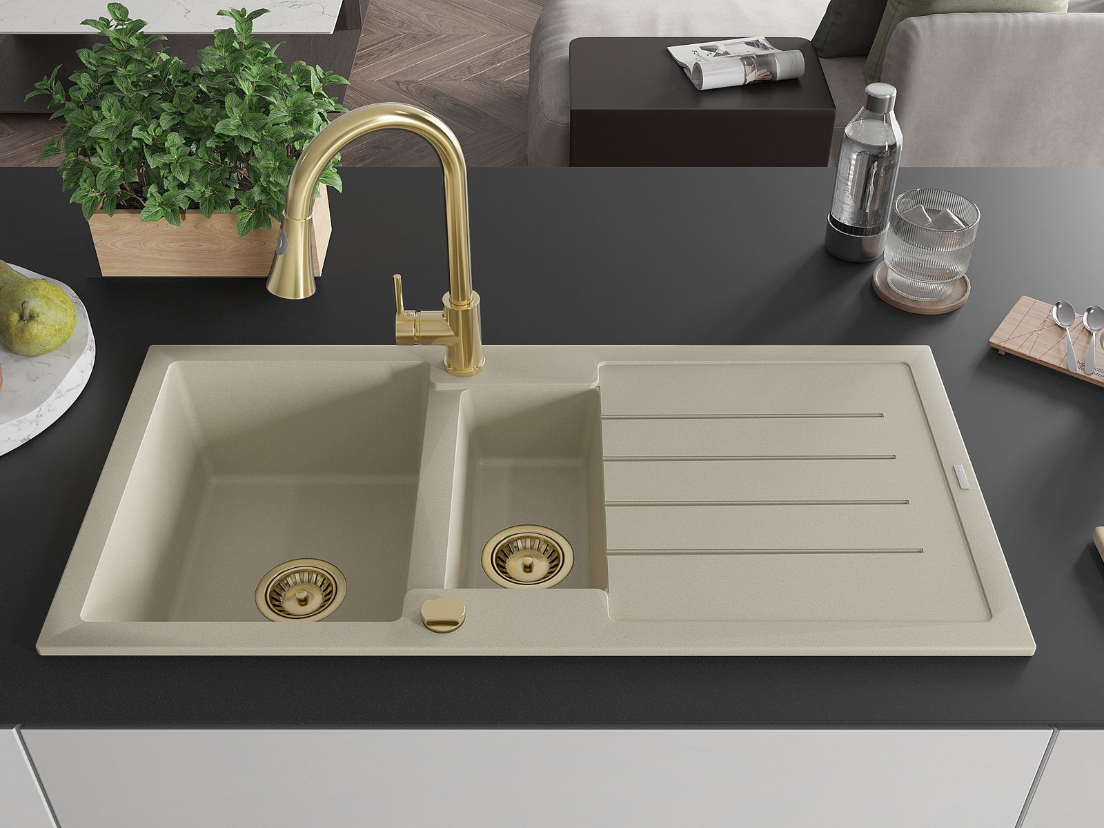 The sink is made of high quality granite. It is an elegant and, above all, practical complement to every kitchen, regardless of its style. High quality and granite durability ensure many years of use.