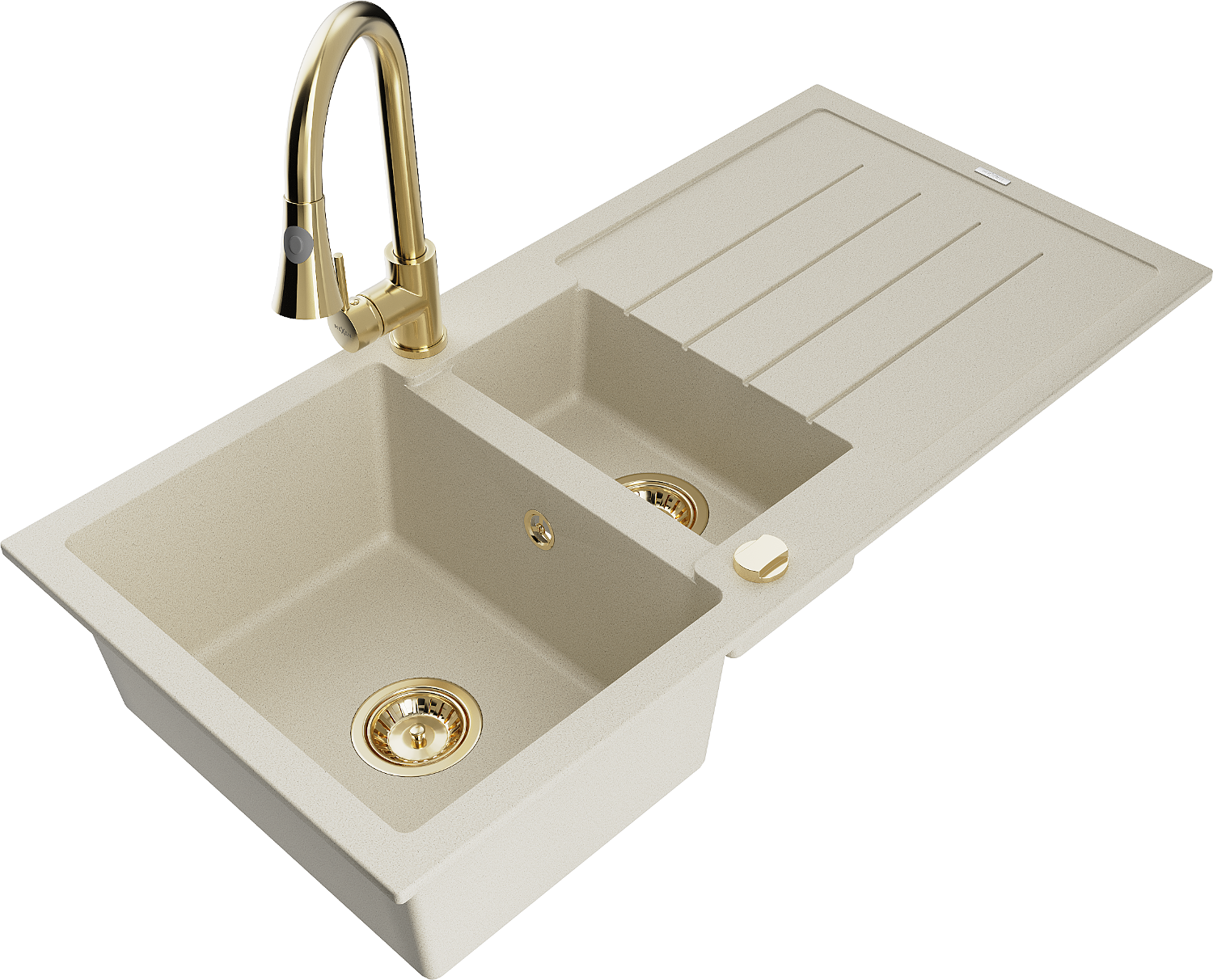 Mexen Andres granite sink 1.5-bowl with drainer and Elia kitchen tap, beige - 6515-69-670101-50