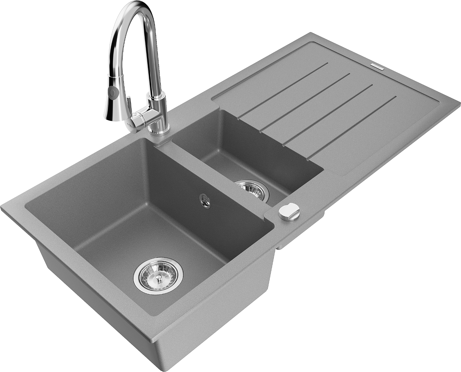 Mexen Andres 1.5-bowl granite kitchen sink with drainer and Elia kitchen tap, grey - 6515-71-670101-00