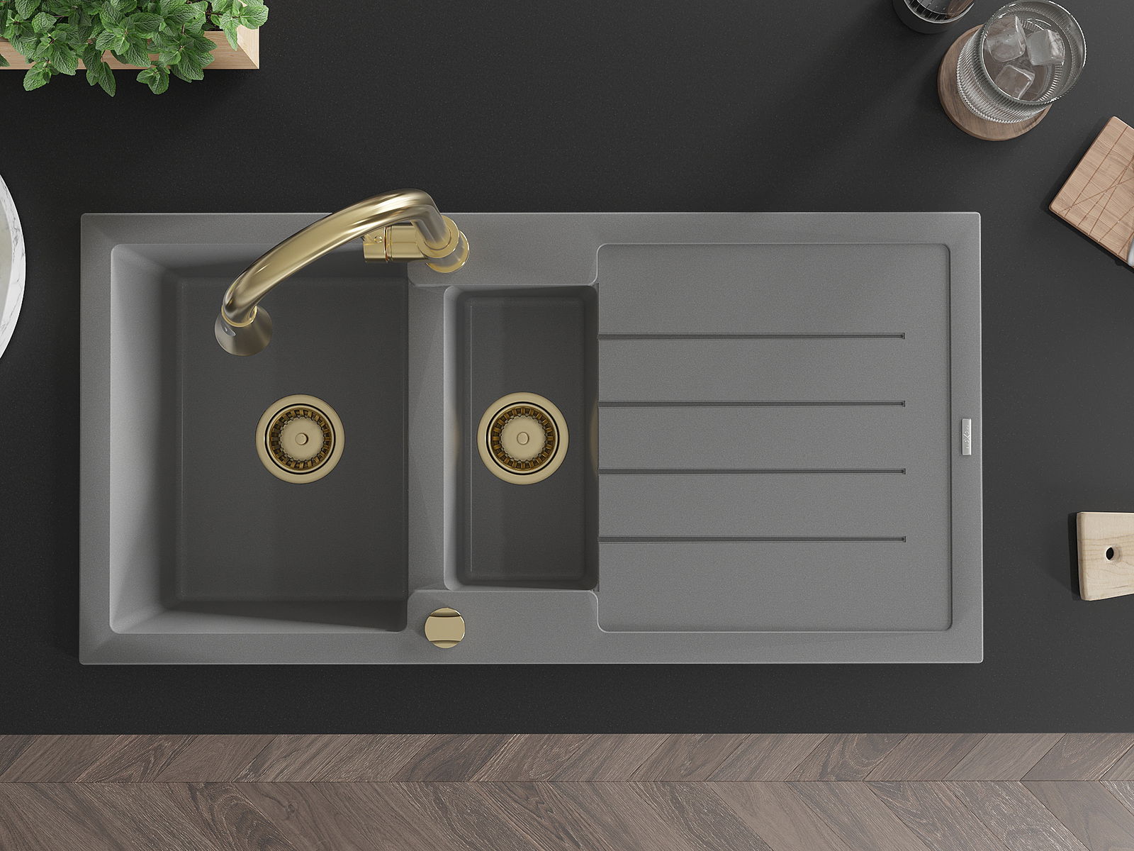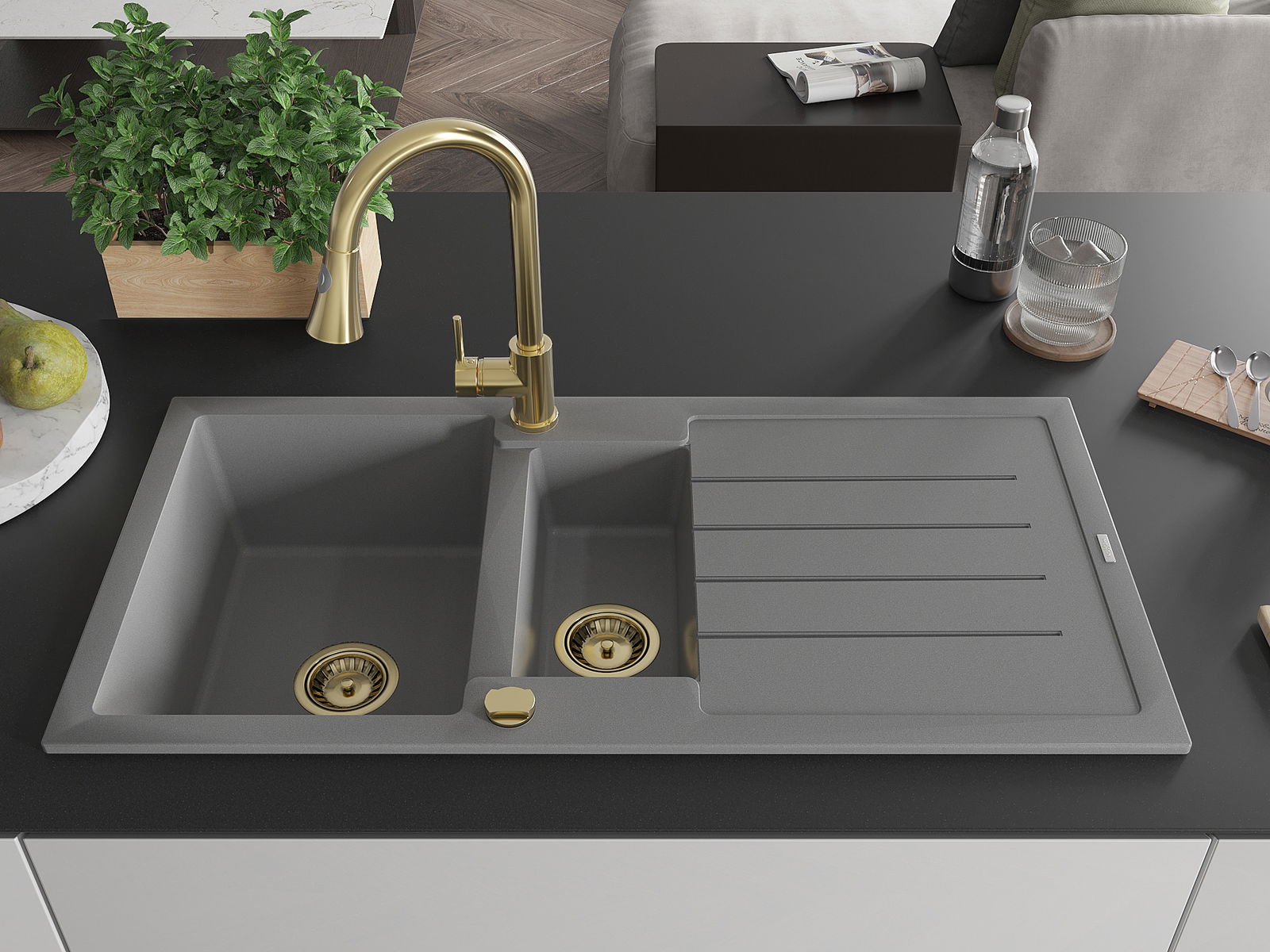 The sink is made of high quality granite. It is an elegant and, above all, practical complement to every kitchen, regardless of its style. High quality and granite durability ensure many years of use.