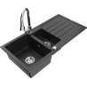 Mexen Andres 1.5-bowl Granite Sink with Drainer and Elia Kitchen Tap, Black/Silver Metallic - 6515-73-670101-00