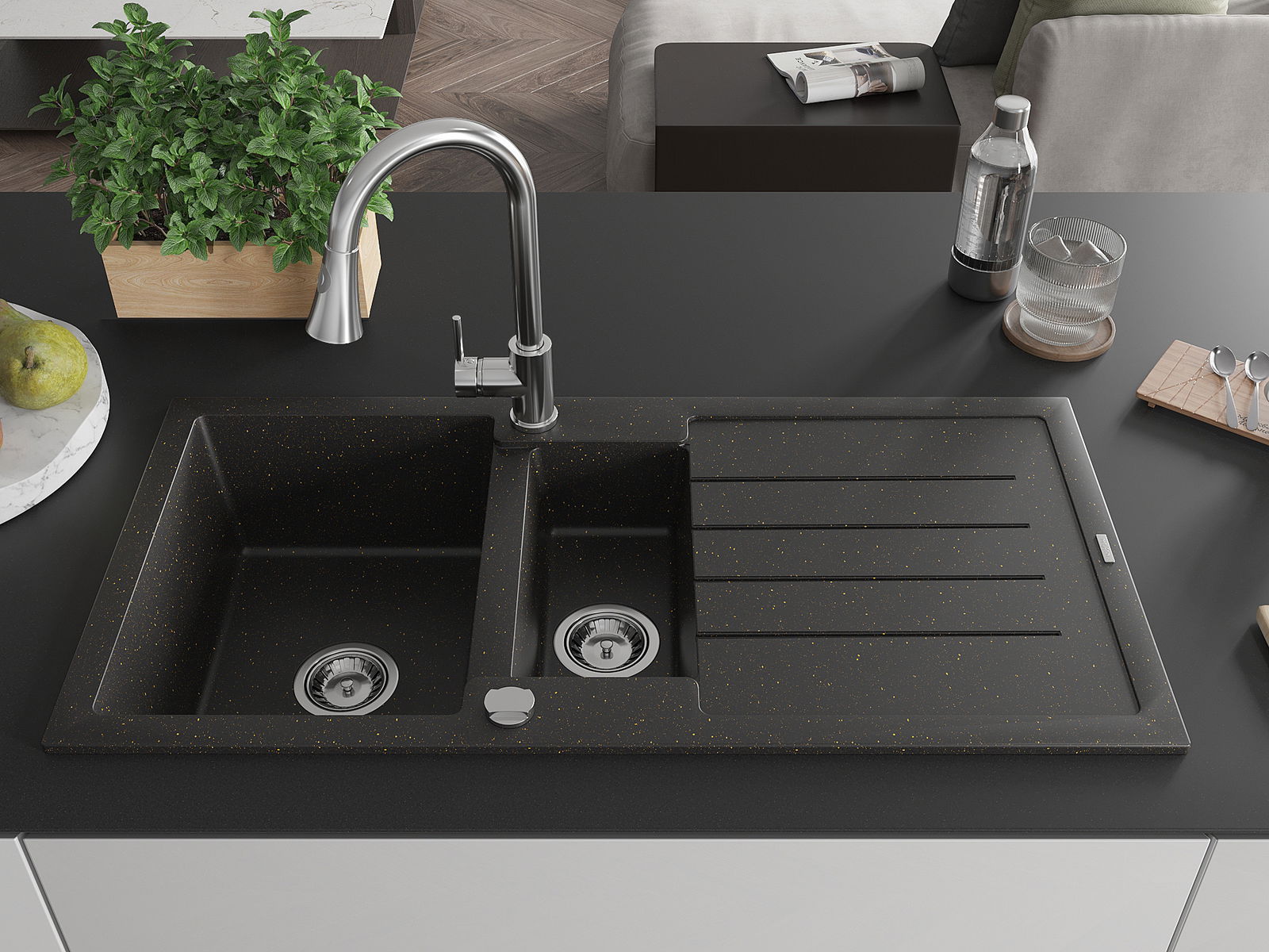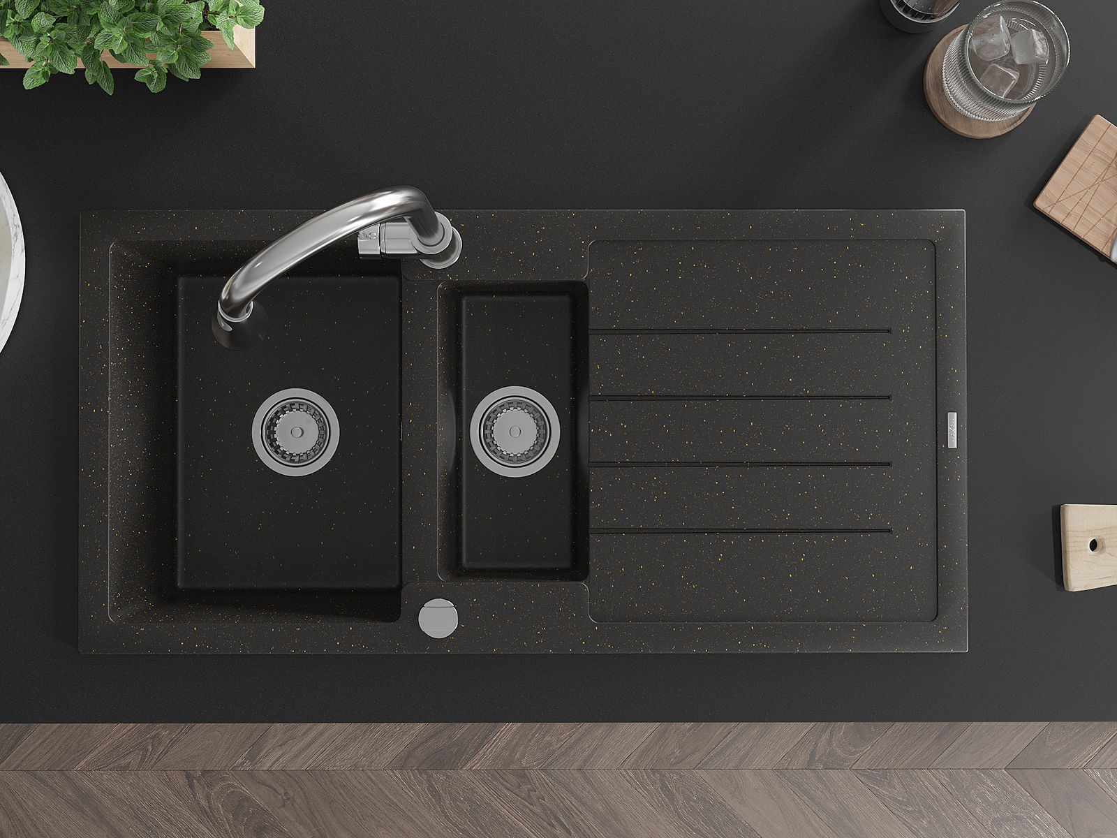 The sink is made of high quality granite. It is an elegant and, above all, practical complement to every kitchen, regardless of its style. High quality and granite durability ensure many years of use.
