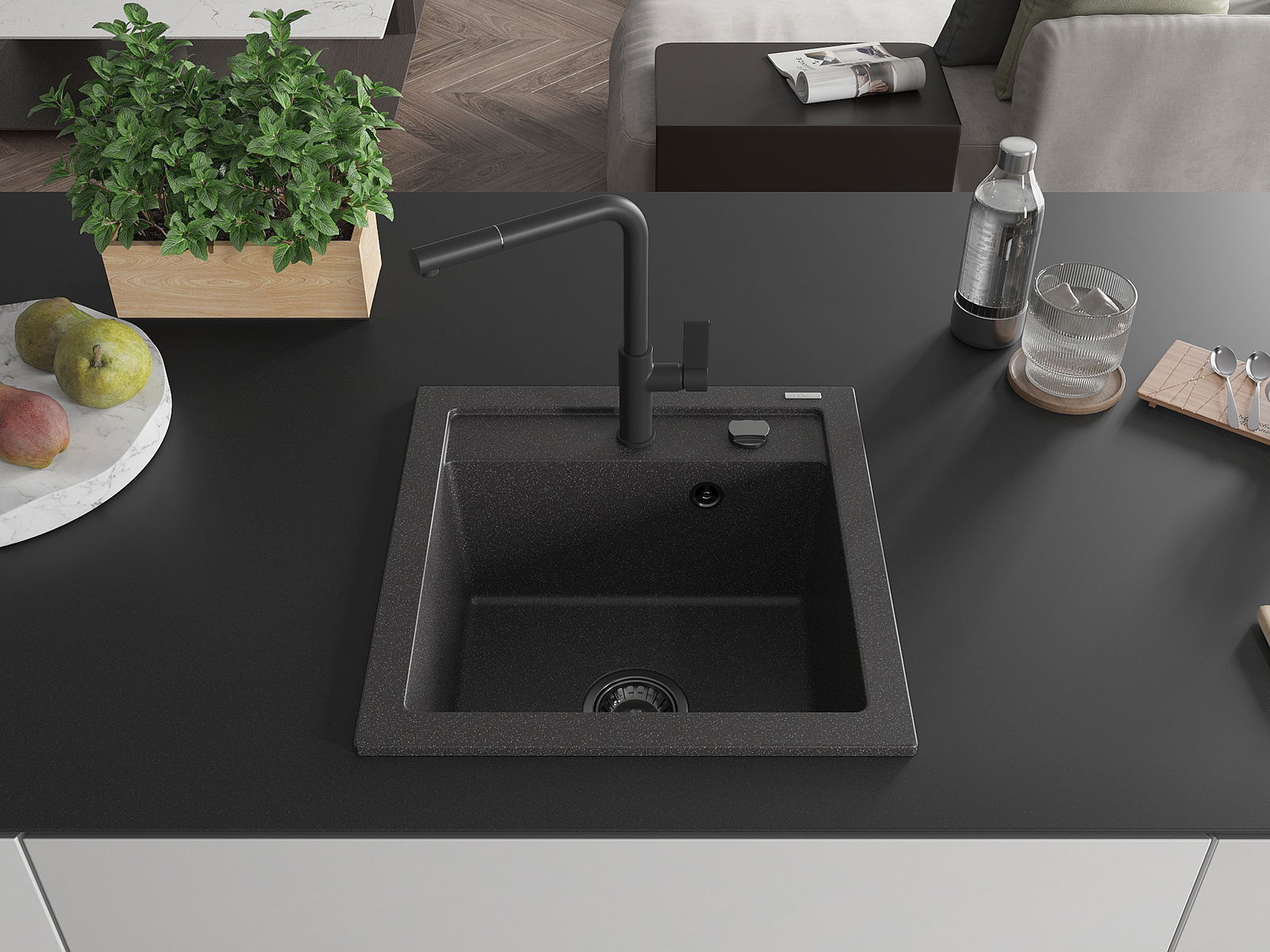 The sink is made of high quality granite. It is an elegant and, above all, practical complement to every kitchen, regardless of its style. High quality and granite durability ensure many years of use.