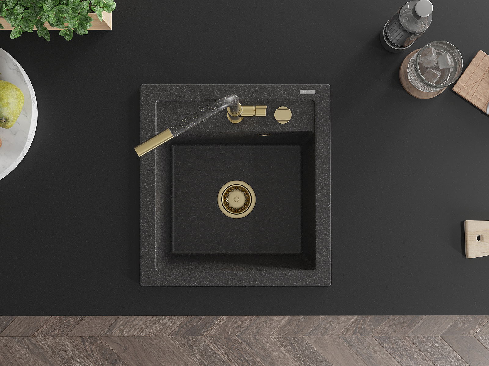 The sink has a shown hole with a diameter of 35 mm for self -burst. It can be used, among others For mounting a liquid dispenser that will eliminate the presence of plastic bottles in the kitchen and give it an elegant finish.