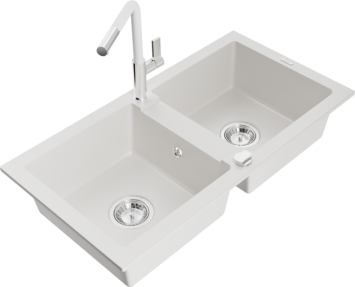 Mexen Mario granite sink 2-chamber with Flora kitchen tap, white - 6504-20-670401-02